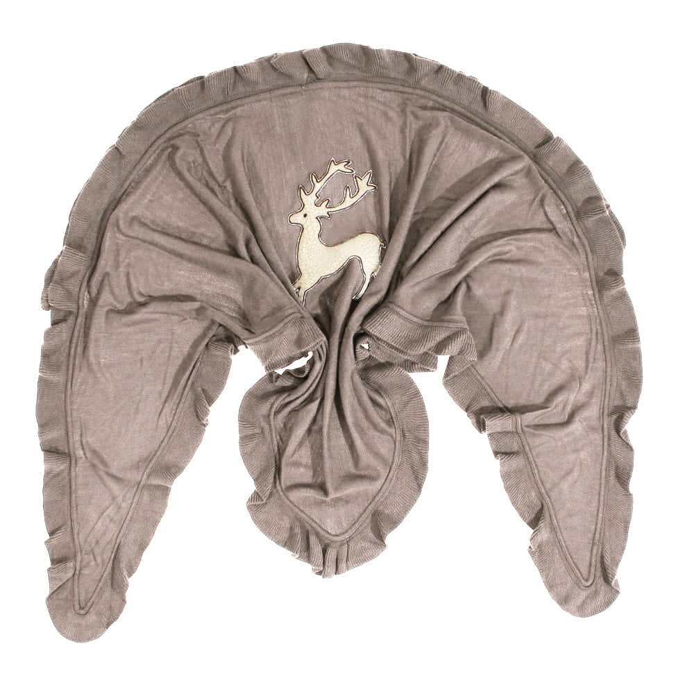 Piękna chusta z aplikacją jelonka zapewni ciepło w chłodne dni, świetnie nadaje się do kurtki oraz jako okrycie na ramiona. Idealnie zestawisz ją z każdą stylizacją, na elegancko i na sportowo. Wykończona uroczą falbanką.