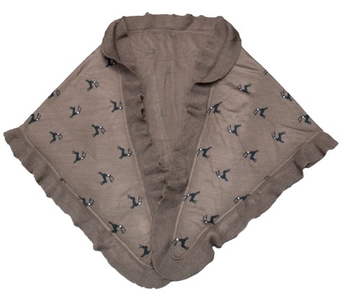 Piękna chusta z wzorem w jelonki zapewnia ciepło w chłodne dni, świetnie nadaje się do kurtki oraz jako okrycie ramion. Idealnie zestawisz ją z każdą stylizacją, na elegancko i na sportowo. Wykończona uroczą ,szeroką falbanką