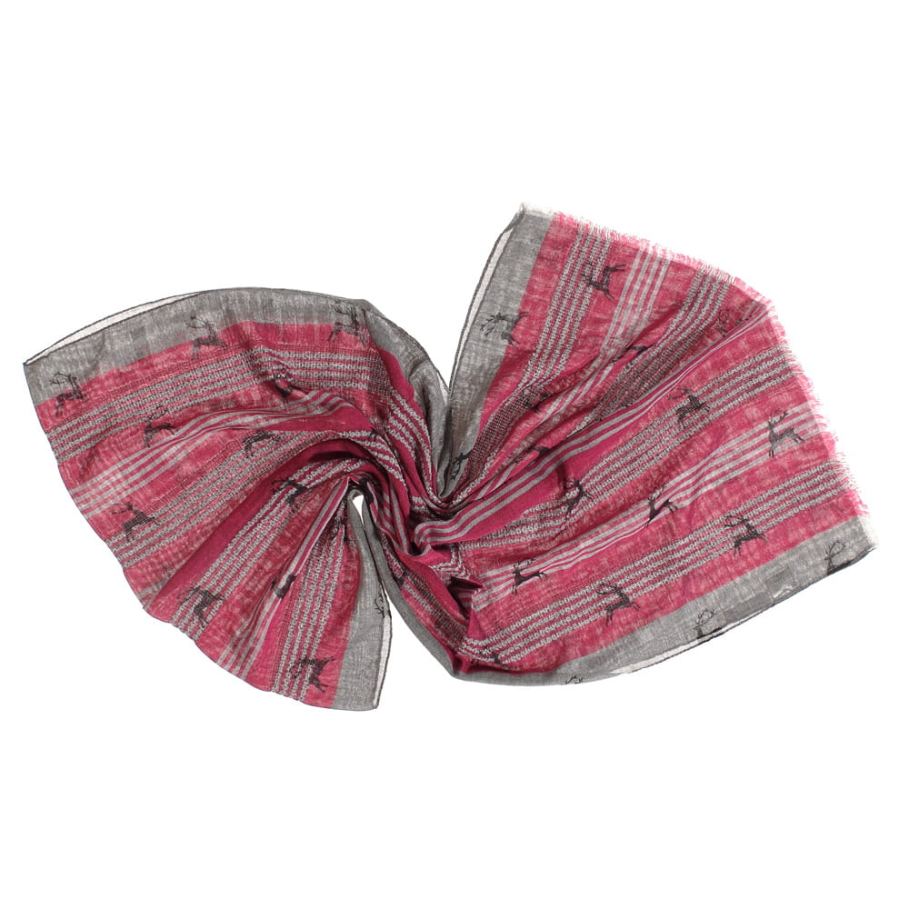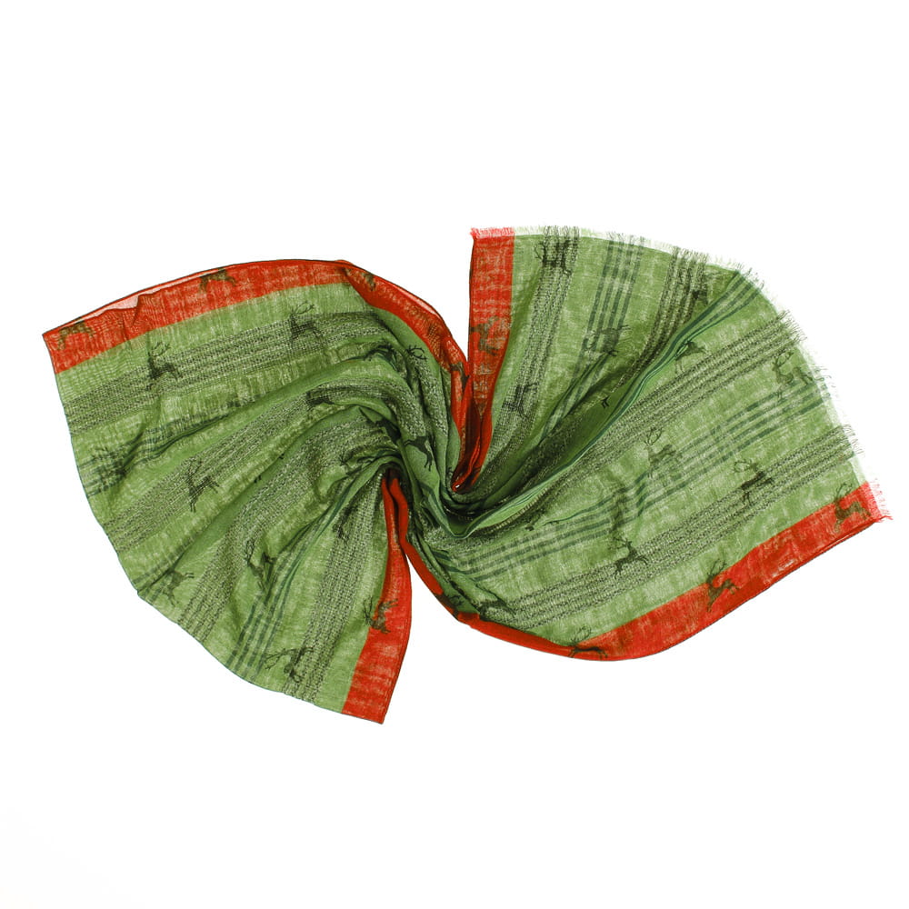 Kolorowy szal z nadrukiem jelonków - wyjątkowo szykowny dodatek w oryginalnym stylu. Unikalna kompozycja delikatnego materiału z modnym wzorem, to połączenie niezawodne, które dopełni niejedną wyjściową stylizację. Przyjazny dla skóry i odporny na uszkodzenia.
