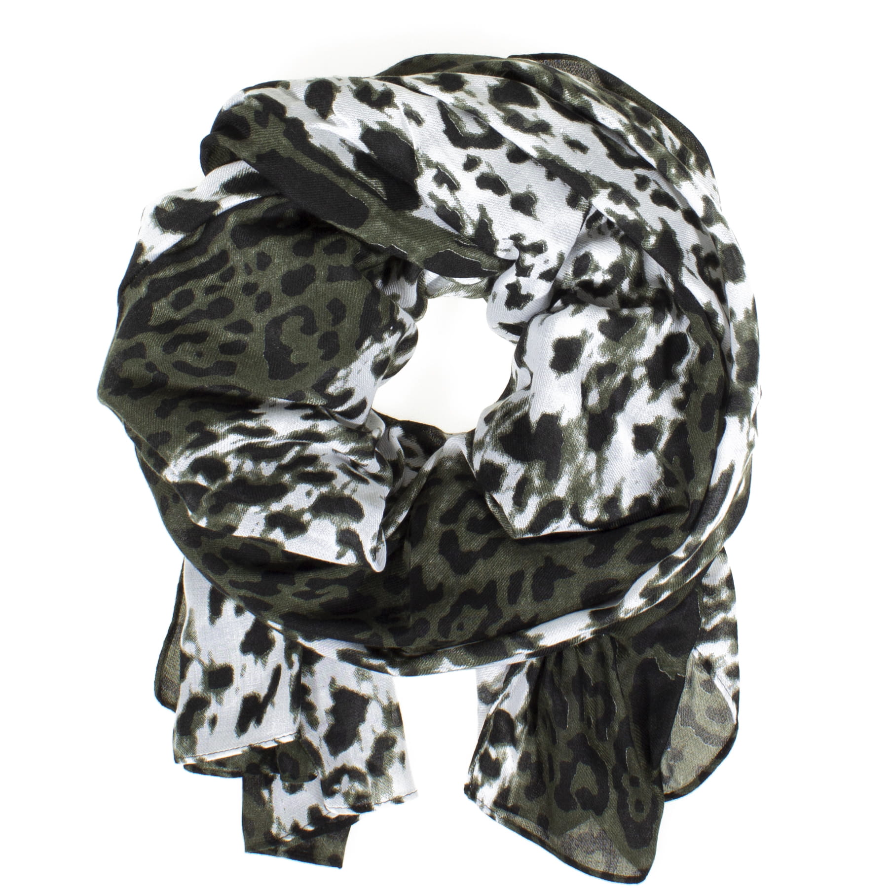Kolorowy szal z nadrukiem cętek - wyjątkowo szykowny dodatek w oryginalnym stylu. Unikalna kompozycja delikatnego materiału z atłasowym połyskiem i modnym wzorem, to połączenie niezawodne, które dopełni niejedną wyjściową stylizację. Przyjazny dla skóry i odporny na uszkodzenia.