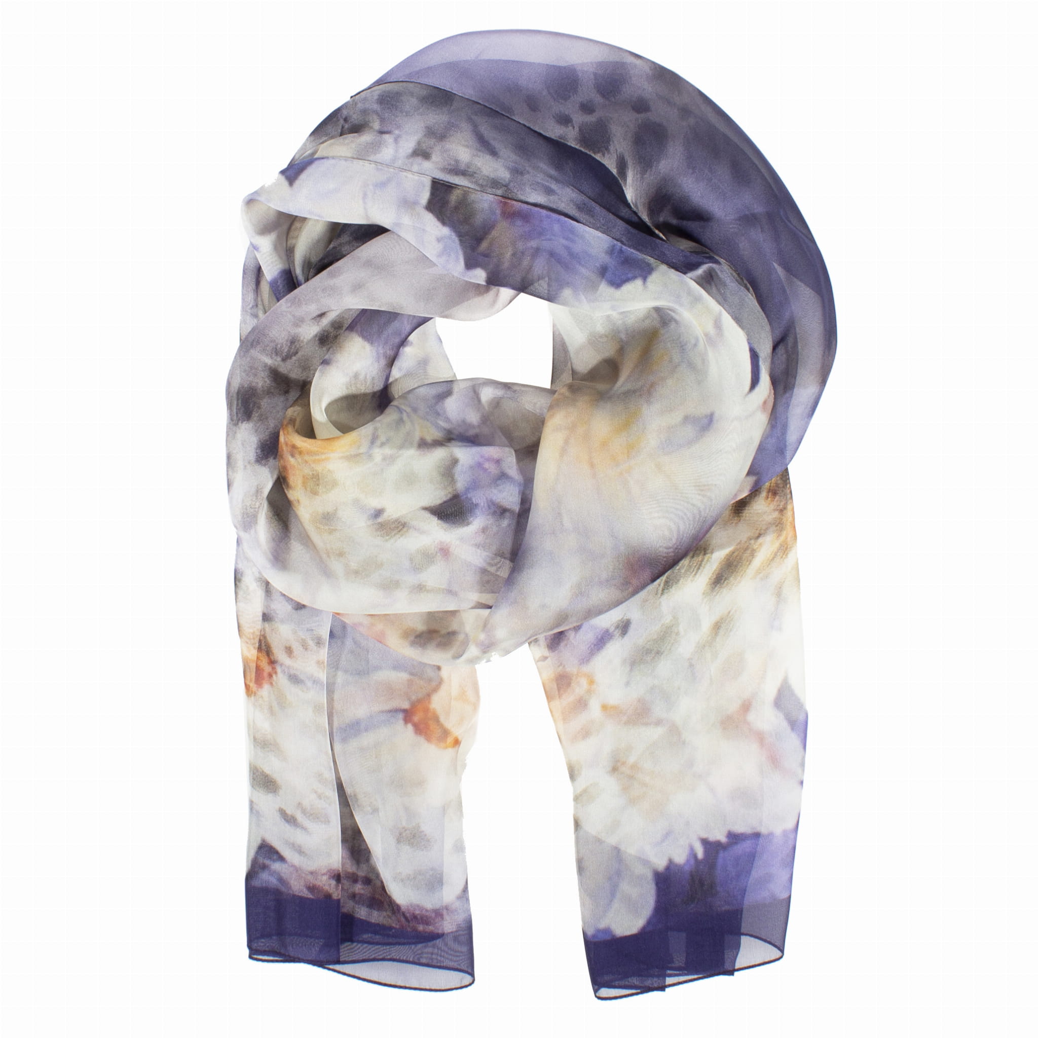 Przepiękny jedwabny szal - wyjątkowo szykowny dodatek w oryginalnym stylu. Delikatny, szal z modnym wzorem, to połączenie niezawodne, które dopełni niejedną wyjściową stylizację.