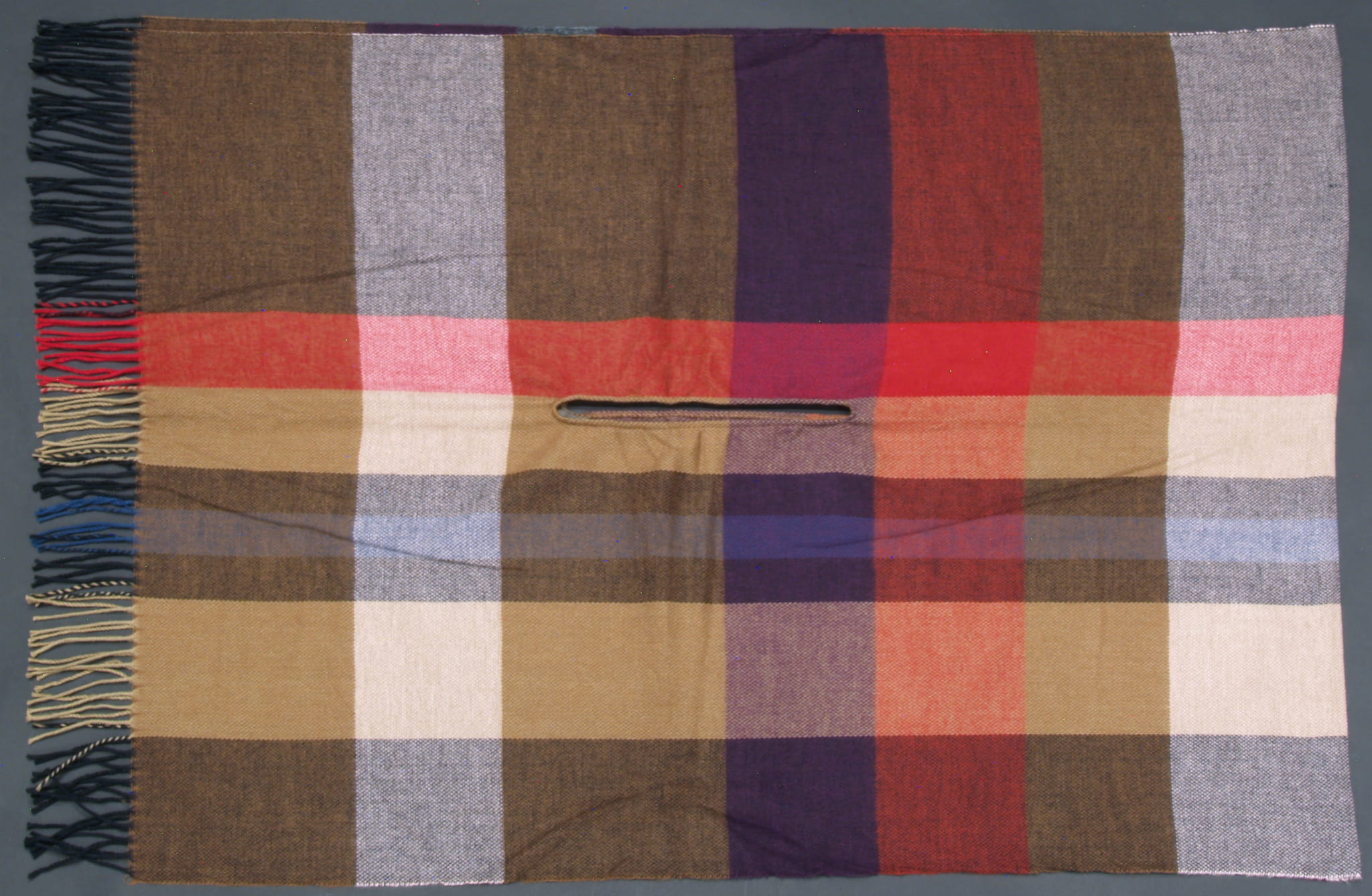 Duży, szal-poncho w kratę - wyjątkowo szykowny dodatek w oryginalnym stylu. Bardzo ciepły, szal z modnym wzorem, to połączenie niezawodne, które dopełni niejedną wyjściową stylizację.