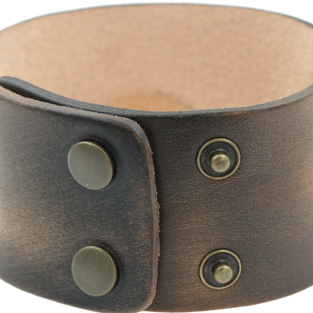 Szeroka,skórzana bransoletka STYRYJSKA PANTERA w kolorze brązowym. Bransoletka zaprojektowana i wykonana przez markę Thielemann.