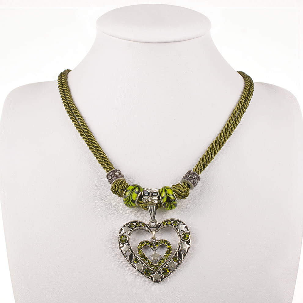 Śliczny naszyjnik serce w sercu na podwójnym,satynowym sznureczku.
