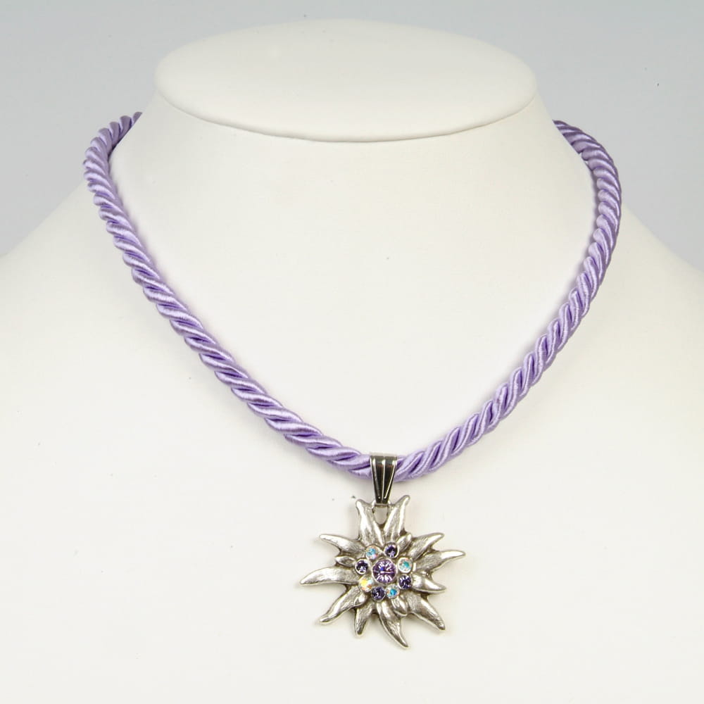 Zawieszka z szarotką na sznurku w kolorze lilowym. PS Schuhmacher specjalizuje się w produkcji i sprzedaży wysokiej jakości tradycyjnych akcesoriów i biżuterii. Piękna i niebanalna biżuteria zachwyca swoim urokiem i wyjątkowością. Różnorodność kolorów jak i wzorów sprawia że każdy znajdzie dla siebie coś wyjątkowego a swoich bliskich oczaruje wspaniałym prezentem.