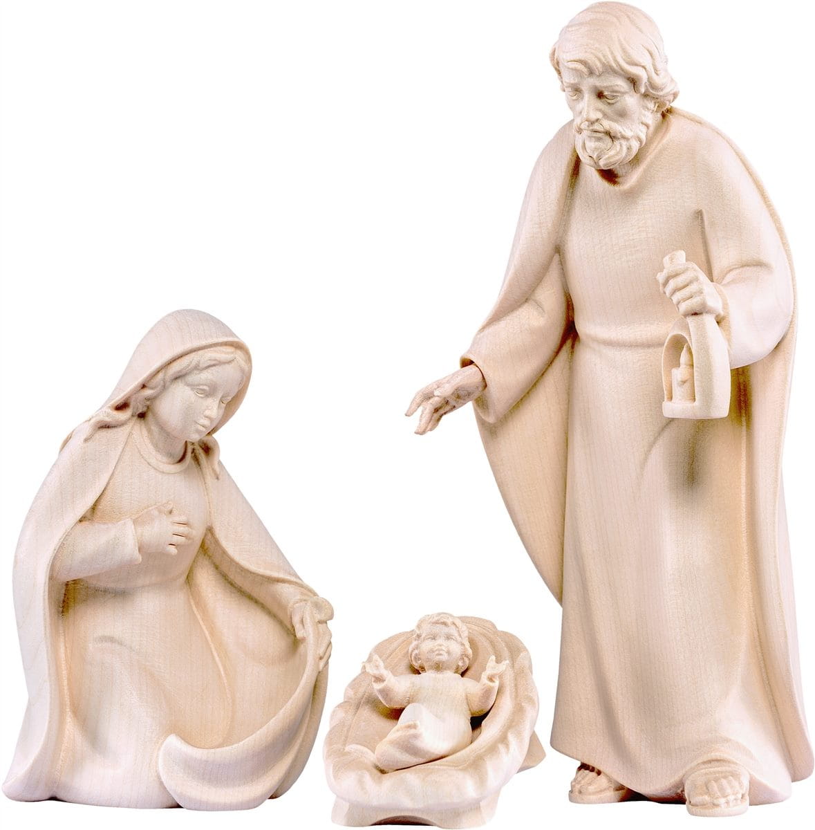 Figurki drewniane Marii,Józefa i dzieciątka Jezus wyrzeźbione we Włoszech (Val Gardena) przez miejscowych artystów. Region słynie z ręcznie wytwarzanych figur, płaskorzeźb, szopek Bożonarodzeniowych i wielu innych przedmiotów artystycznych wykonanych z drewna. Od XIX wieku, produkowane są tam rzeźby i ołtarze rzeźbione dla kościołów katolickich na całym świecie.