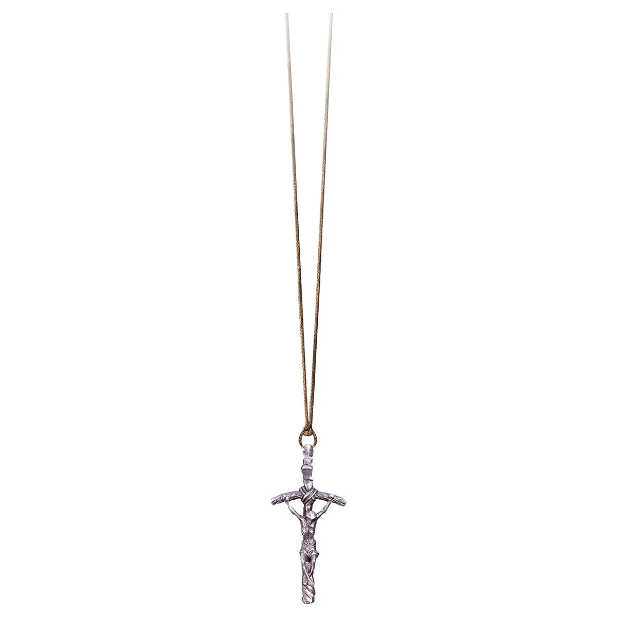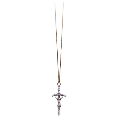 Naszyjnik z drewnianym krzyżem papieskim, wyrzeźbiony i ozdobiony we Włoszech (Val Gardena) przez miejscowych artystów. Region słynie z ręcznie wytwarzanych figur, płaskorzeźb, szopek Bożonarodzeniowych i wielu innych przedmiotów artystycznych wykonanych z drewna. Od XIX wieku, produkowane są tam rzeźby i ołtarze rzeźbione dla kościołów katolickich na całym świecie.