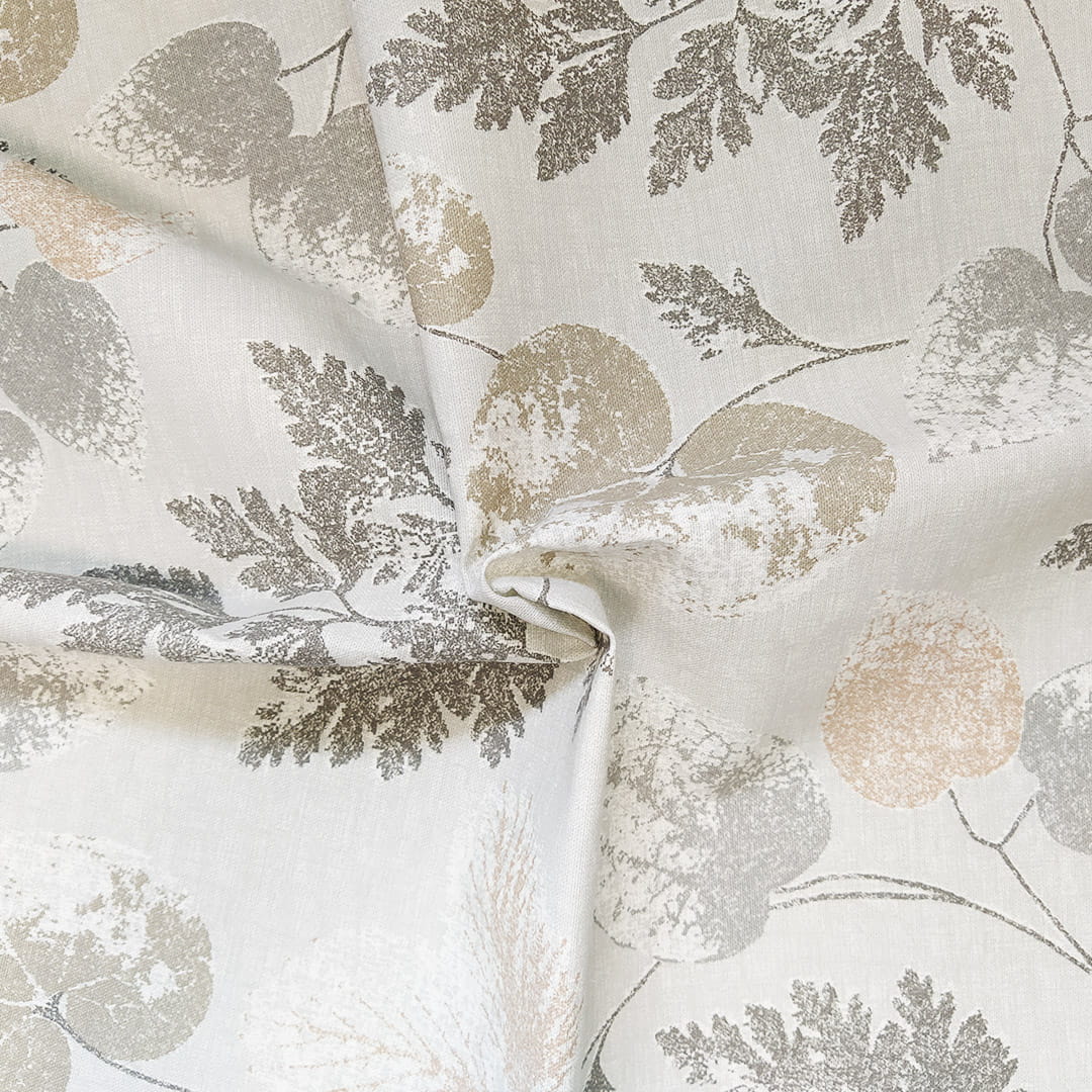 Dekoracyjna tkanina GREAT NATURE w beżowe liście. Klasyczne i delikatne połączenie kolorów ecru i jasnej szarości, tworzy ponadczasowy efekt. Wysokiej jakości tkanina o strukturze tzw. plecionki doskonale sprawdzi się podczas tworzenia dekoracji domu i sal na różnego rodzaju imprezy okolicznościowe. Jest cienka, lekka, nie prześwituje i nie rozciąga się. Jej niewielka sztywność oraz brak elastyczności powodują, że wykonane z niej drapowania i marszczenia gwarantują niesamowity efekt. Tkanina charakteryzuje się niezwykłą wytrzymałością, odpornością na ścieranie i niską kurczliwością. Ponadto jest łatwa w użytkowaniu, ponieważ szybko schnie i nie gniecie się mocno.