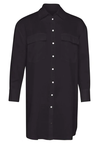 Bluzka koszulowa firmy Fynch-Hatton w kolorze czarnym. Lniana, wszechstronna bluzka w kolorach ziemi inspirowana krajobrazem i słońcem Afryki to ciekawa propozycja doskonale wpisująca się w letnie, urlopowe klimaty. Ta długa bluzka wykonana z naturalnej tkaniny o luźnym, oversizowym fasonie doskonale łączy się z spodniami ale również można nosić ją jako sukienkę.