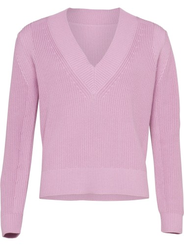 Sweter damski RIBBED w kolorze liliowym firmy FYNCH-HATTON. Sweter z lekkiej dzianiny z uwodzicielskim dekoltem sprawi, że serce zabije szybciej... Monochromatyczny, świeży kolor, opadające ramiona i luźny krój tworzą przestrzeń do wielu ciekawych, modowych aranżacji.