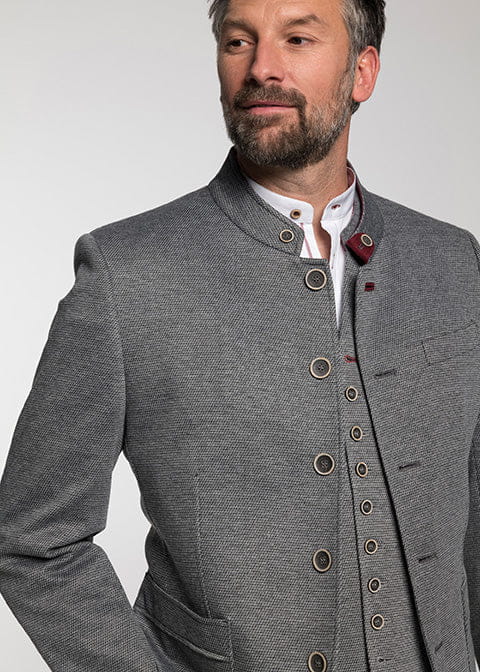 Tradycyjna męska marynarka w stylu alpejskim w kolorze jasnoszarym. To arcydzieło łączy w sobie mistrzowskie detale i wysokiej jakości materiały, tworząc wyjątkowej klasy ubranie, które pasuje na każdą okazję. Ta marynarka to nie tylko stylowy towarzysz na co dzień, ale także część oficjalnego stroju drużyny piłkarskiej FC Bayern Monachium. Dzięki tej marynarce masz okazję ubrać się jak prawdziwy zawodowy piłkarz i przenieść swój styl na wyższy poziom.