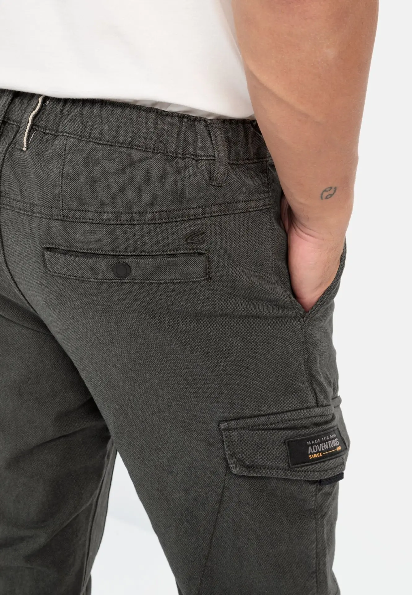 Spodnie wykonane są z bawełny z dodatkiem stretchu, który zapewnia optymalne dopasowanie. Tkanina ta charakteryzuje się odpornością na ścieranie i łatwością pielęgnacji. Miejski wygląd tworzą kieszenie cargo i efekt sprania tkaniny przypominającej wyglądem wełnę. Elastyczny pas po wewnętrznej stronie i luźny krój sprawiają, że spodnie są mega wygodne i przyjemne w noszeniu. Charakterystyczne kieszenie oraz haft z logo Camel Active uzupełniają spodnie.