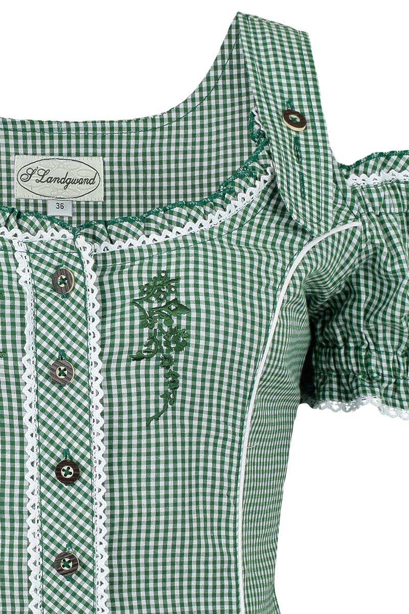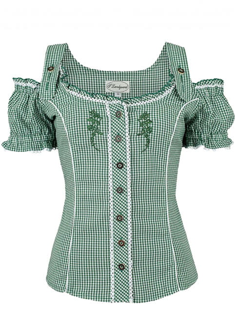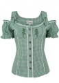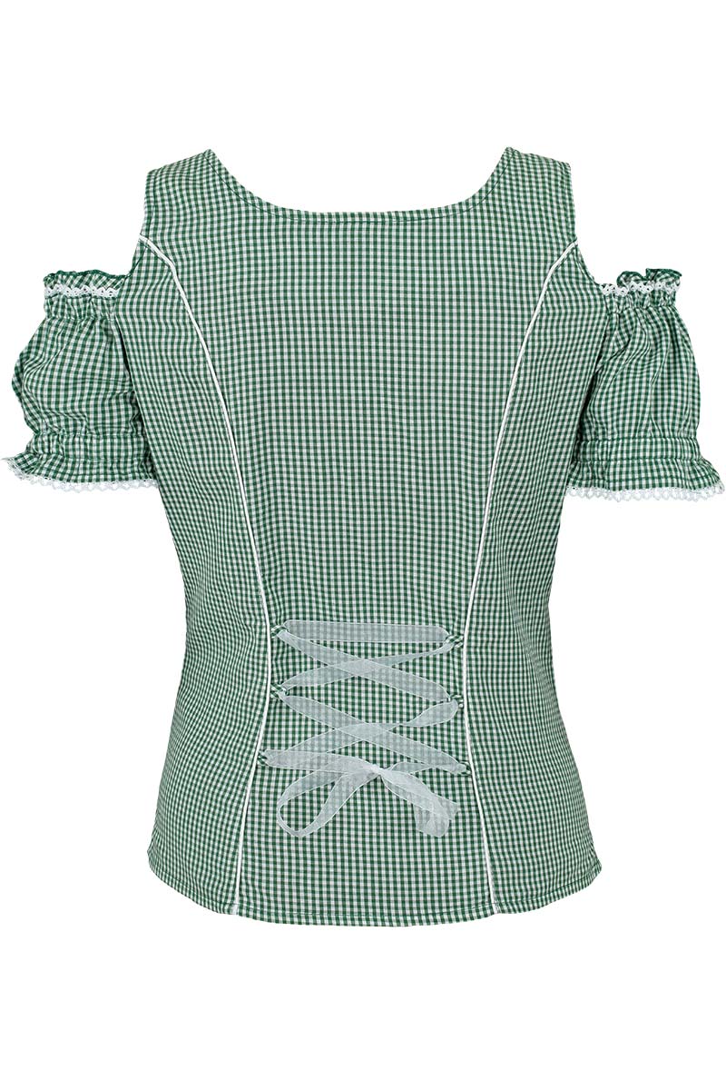 Bluzka damska AKELEI w biało-zieloną kratkę. Modny dekolt i stylowe ramiączka stają się modną kombinacją zarówno do spódnicy jak i spodni. Takiej bluzki nie może brakować w Twojej szafie!