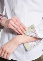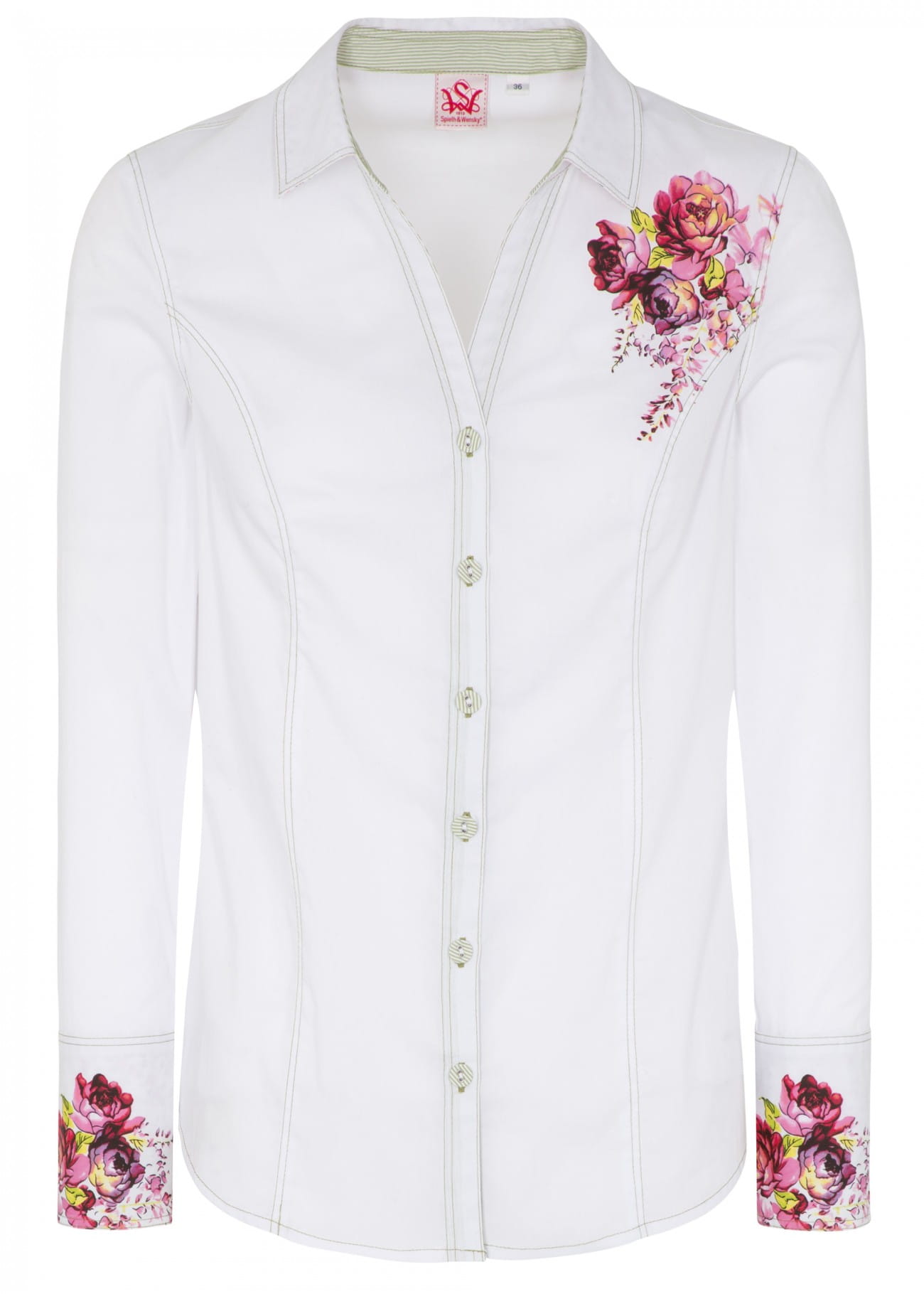 - Kwiatowy nadruk na ramieniu i mankietach