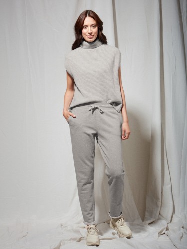 Luźne spodnie dresowe, które idealnie sprawdzą się do biegania, jogi, fitnessu jak i do wypoczynku na kanapie. Dzięki mieszance bawełny są niezwykle miękkie i przyjemne w dotyku. Spodnie charakteryzują się sportowym, jednokolorowym designem, a drobne detale takie jak aksamitny sznurek oraz surowo wykończone kieszenie zapewnia nowoczesny wygląd. Elastyczny pas, doskonale trzyma dzięki czemu spodnie idealnie leżą. Spodnie posiadają dwie naszywane kieszenie z przodu.