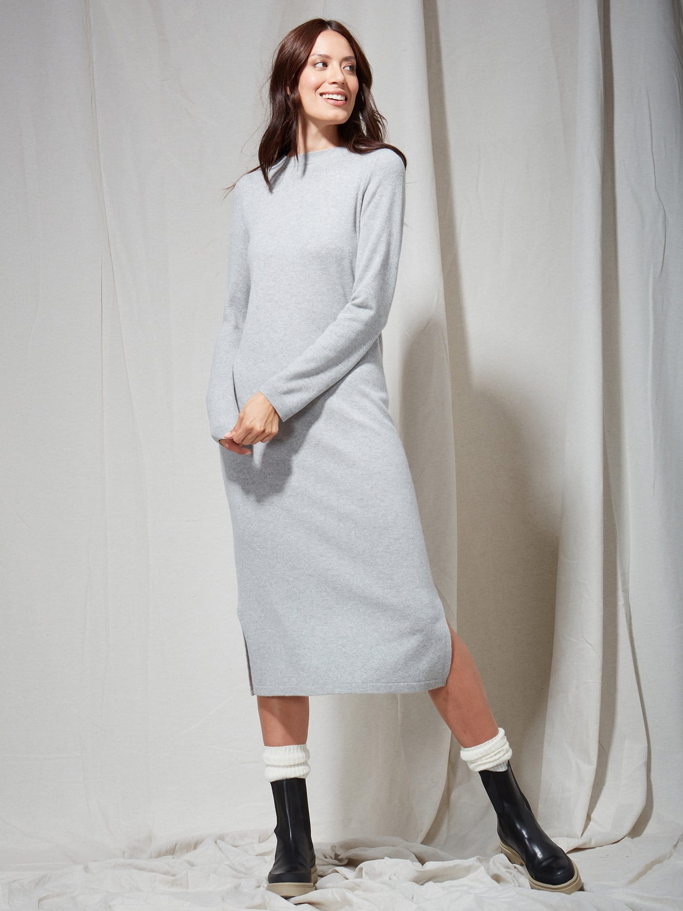 Sukienka dzianinowa LONG KNIT w kolorze popielatym, firmy FYNCH-HATTON.