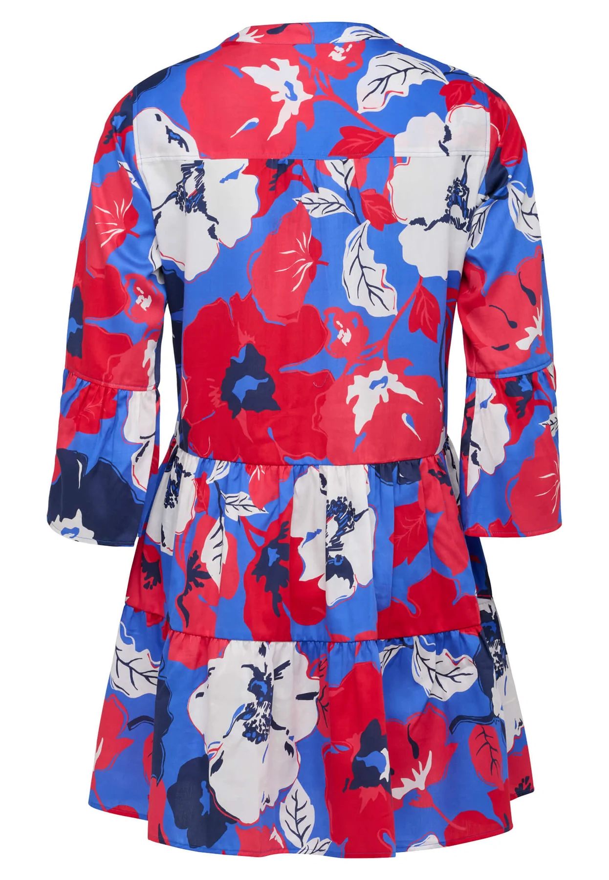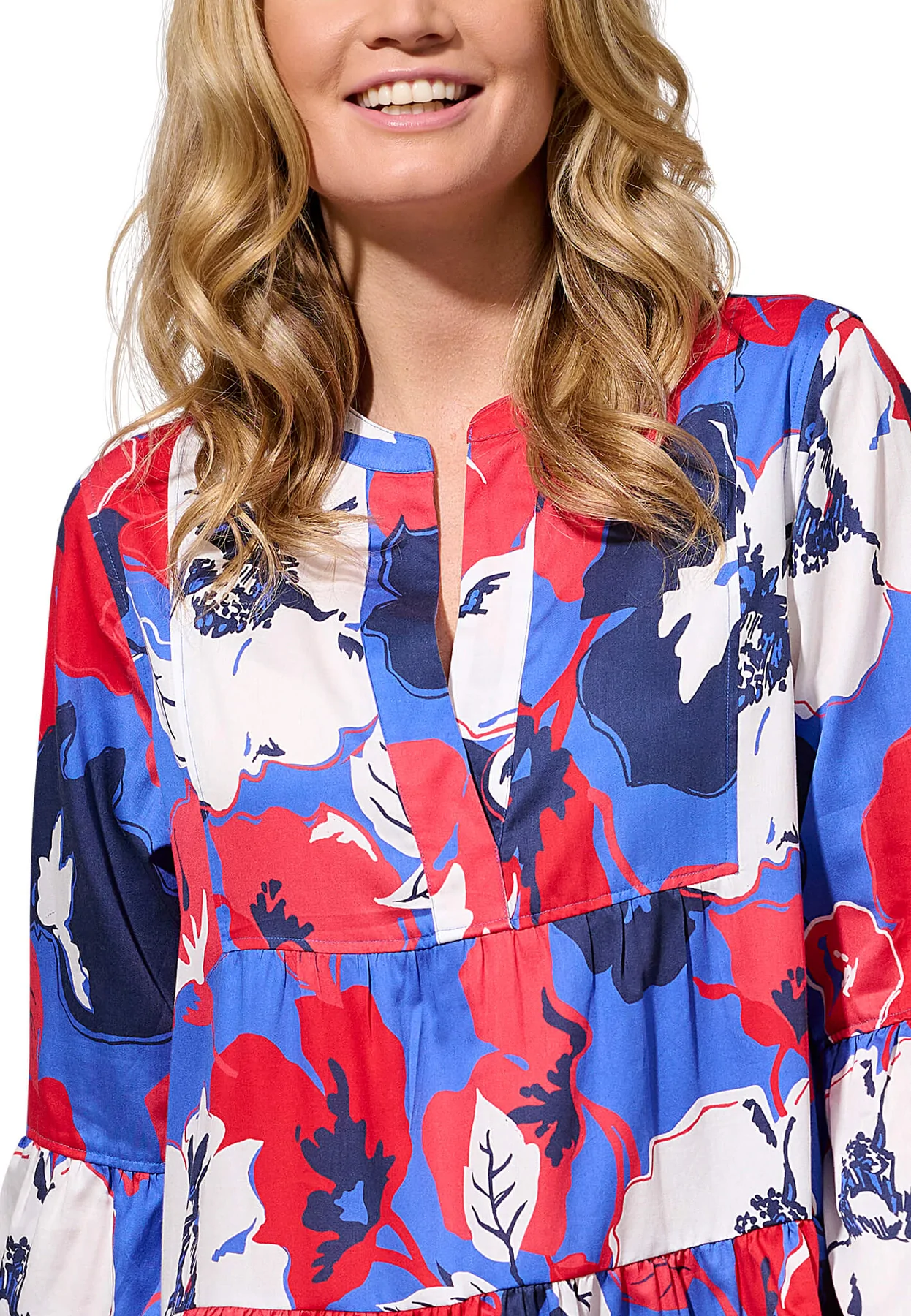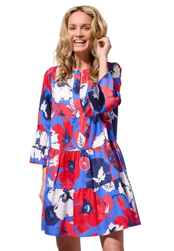 Kwiecista sukienka marki FYNCH-HATTON przekonuje lekkością i wzorzystym nadrukiem. Letnia kombinacja kolorów i tunikowy krój zapewnia swobodę i dobre samopoczucie. Delikatna stójka dyskretnie łączy się z dekoltem w kształcie litery V. Przeszycia oraz rękawy 3/4 w kształcie dzwonu nadają dziewczęcego charakteru całości.
