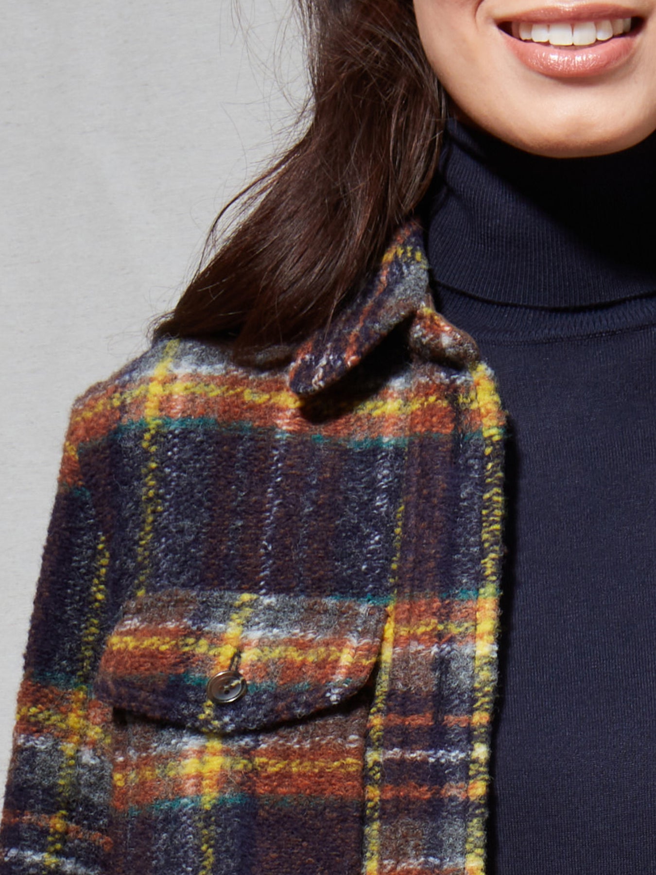 Kurtka wykonana z wysokiej jakości mieszanki materiałów zapewnia wygodę noszenia. Idealnie sprawdzi się w chłodniejsze dni. Kurtka posiada modny wzór w kratę, a małe detale takie jak dwie kieszenie, kieszeń naszywaną na piersi, oraz rękawy zakończone mankietami zapinanymi na guziki świetnie uzupełniają projekt. Prosty krój pozwala poczuć się swobodnie i komfortowo.
