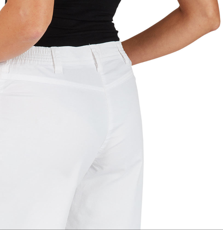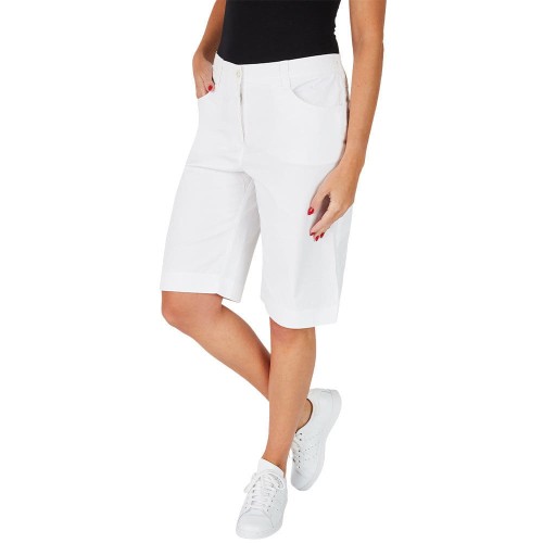 Klasyczne bermudy z lekkiej bawełny o bardzo wygodnym kroju. Te lekkie bawełniane bermudy będą idealne na ciepłe letnie dni. Zapinane są na zamek i guzik a elastyczny pas z boku sprawia, że spodnie idealnie się dopasowują, co zapewnia wysoki poziom komfortu i wygody.