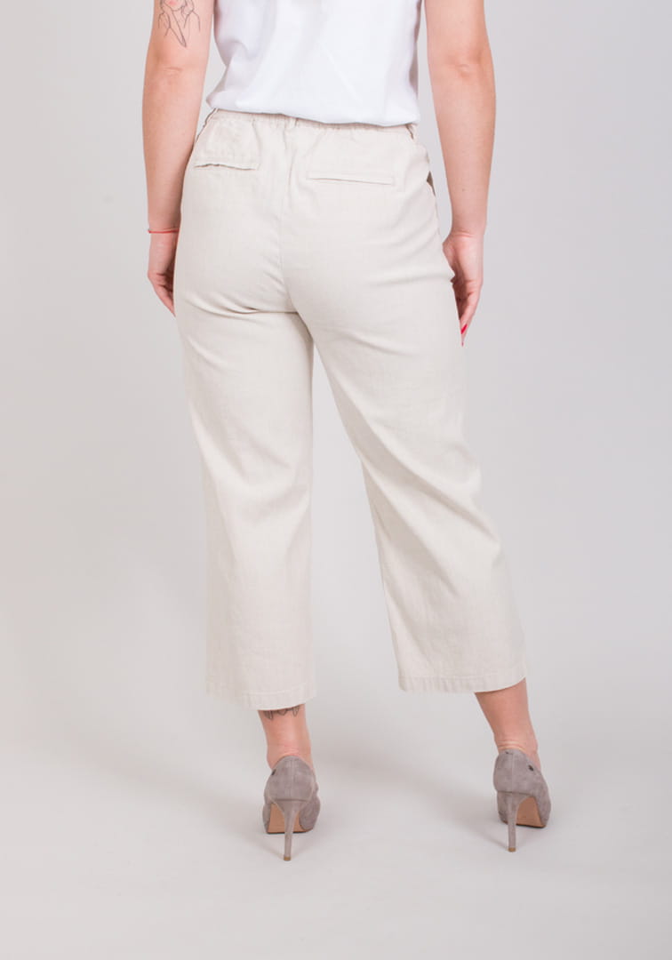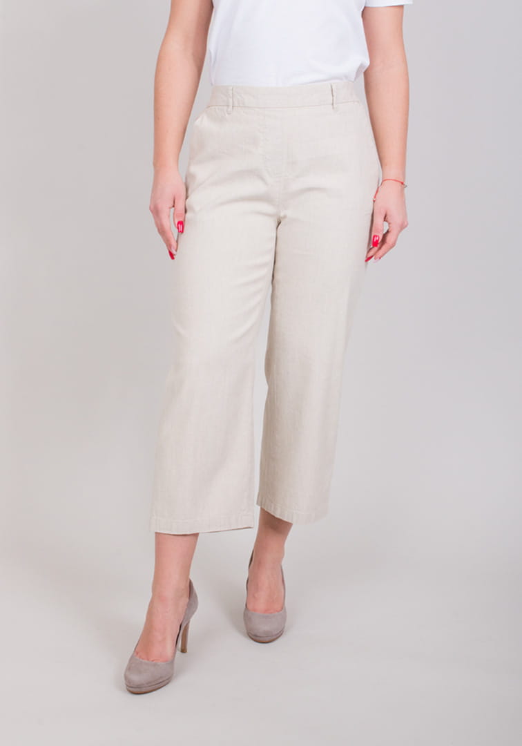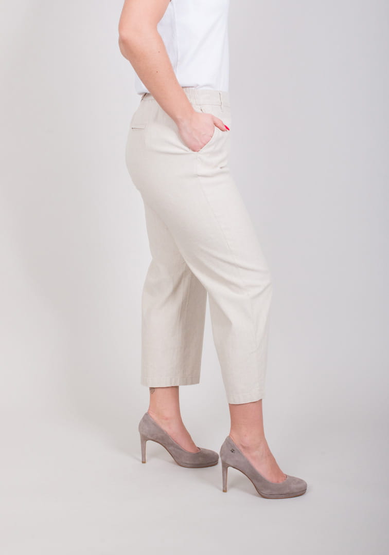 Spodnie LELIA lniane z najnowszej kolekcji GERKE. Modne spodnie 7/8 o wygodnym kroju. Doskonałe dopasowanie oraz wysoka jakość wykonania zapewniają komfort i swobodę ruchu.