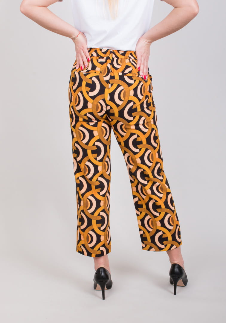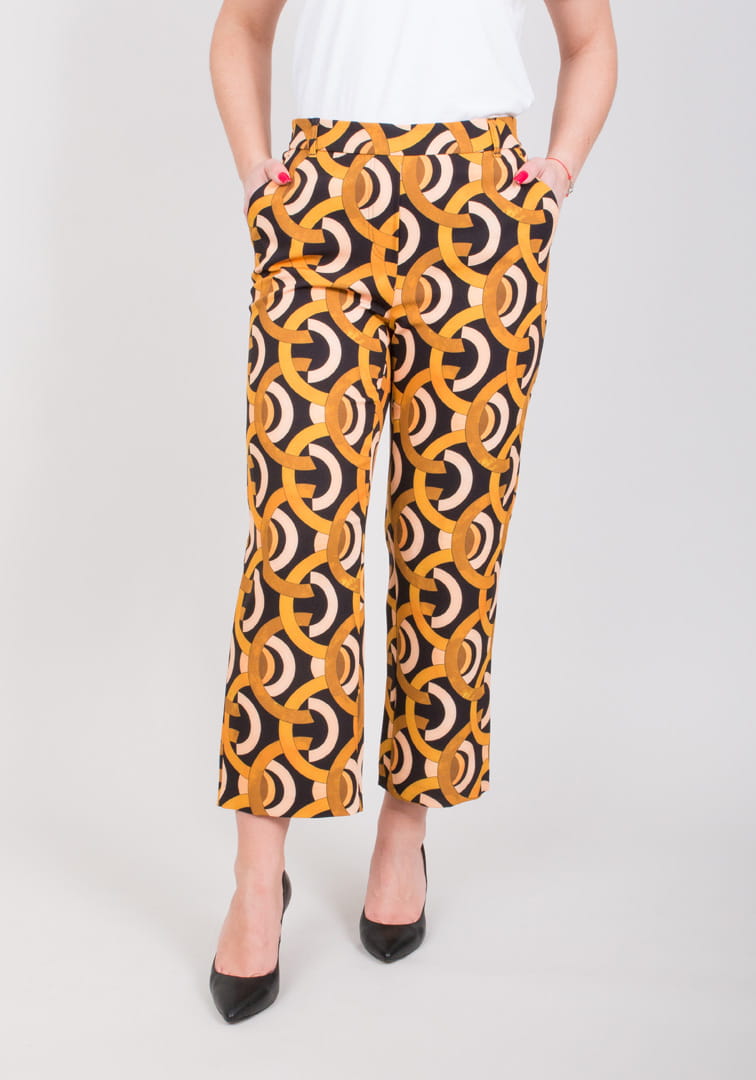 Spodnie LELIA 1 w żółte wzory wzory z najnowszej kolekcji GERKE. Modne spodnie 7/8 o wygodnym kroju. Doskonałe dopasowanie oraz wysoka jakość wykonania zapewniają komfort i swobodę ruchu.