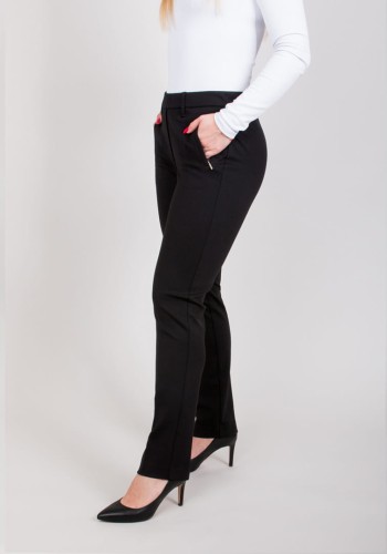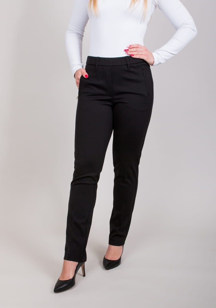 Spodnie EMMA 1 w kolorze czarnym. Klasyczne spodnie o wygodnym kroju, wykonane z ciepłego a zarazem oddychającego materiału. Doskonałe dopasowanie oraz wysoka jakość wykonania zapewniają komfort i swobodę ruchu.