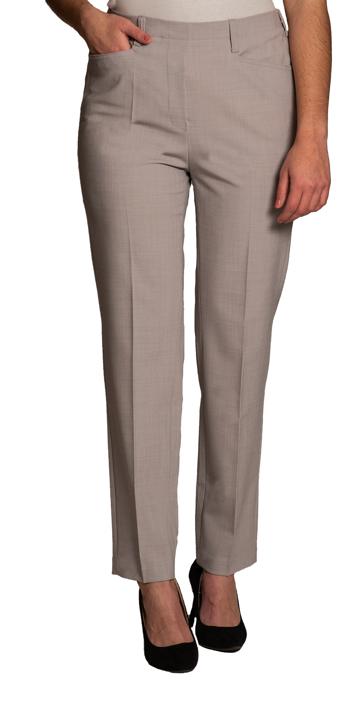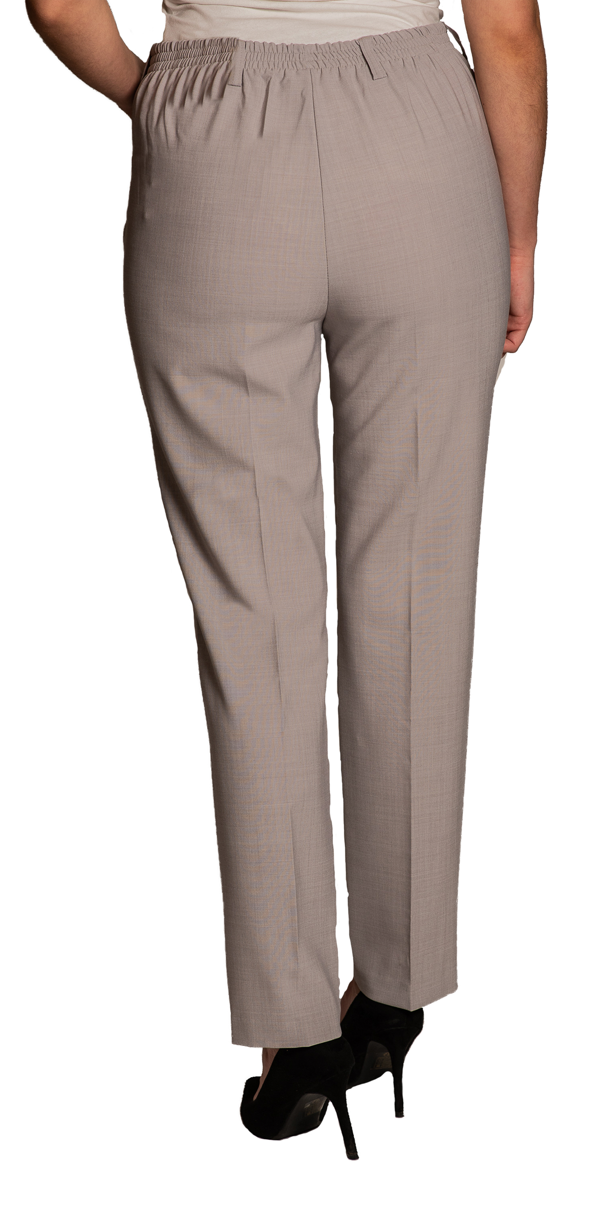 Spodnie ERNA w kolorze beżowym. Urocze, luźne spodnie z kantem. Wspaniały krój i miękki materiał zapewniają niebywały komfort. Po prostu idealne spodnie na ciepłe, letnie dni.