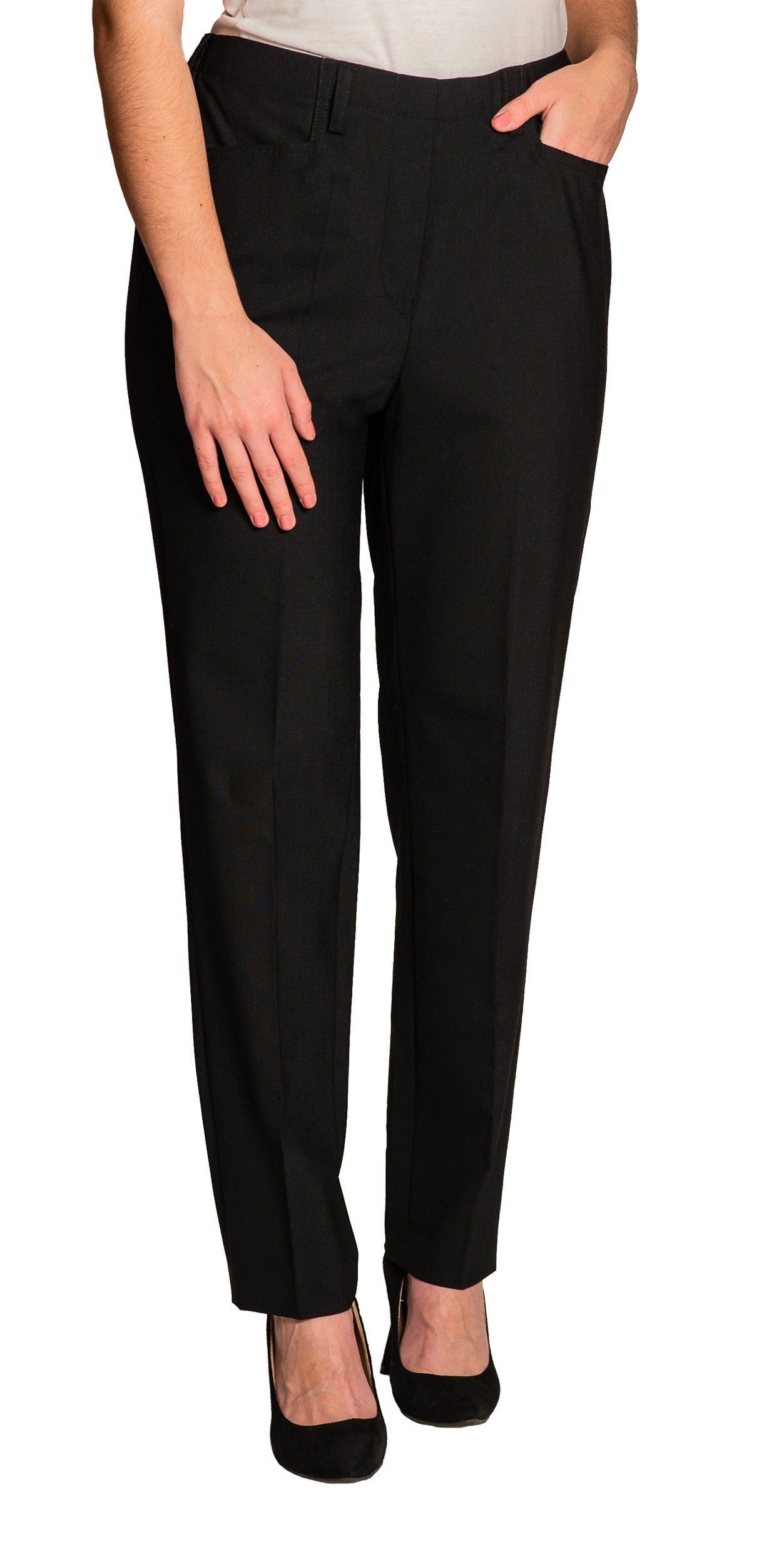 Spodnie ERNA w kolorze czarnym. Klasyczne spodnie o wygodnym kroju, wykonane z przyjemnego, lekkiego materiału. Doskonałe dopasowanie oraz wysoka jakość wykonania zapewniają komfort i swobodę ruchu.