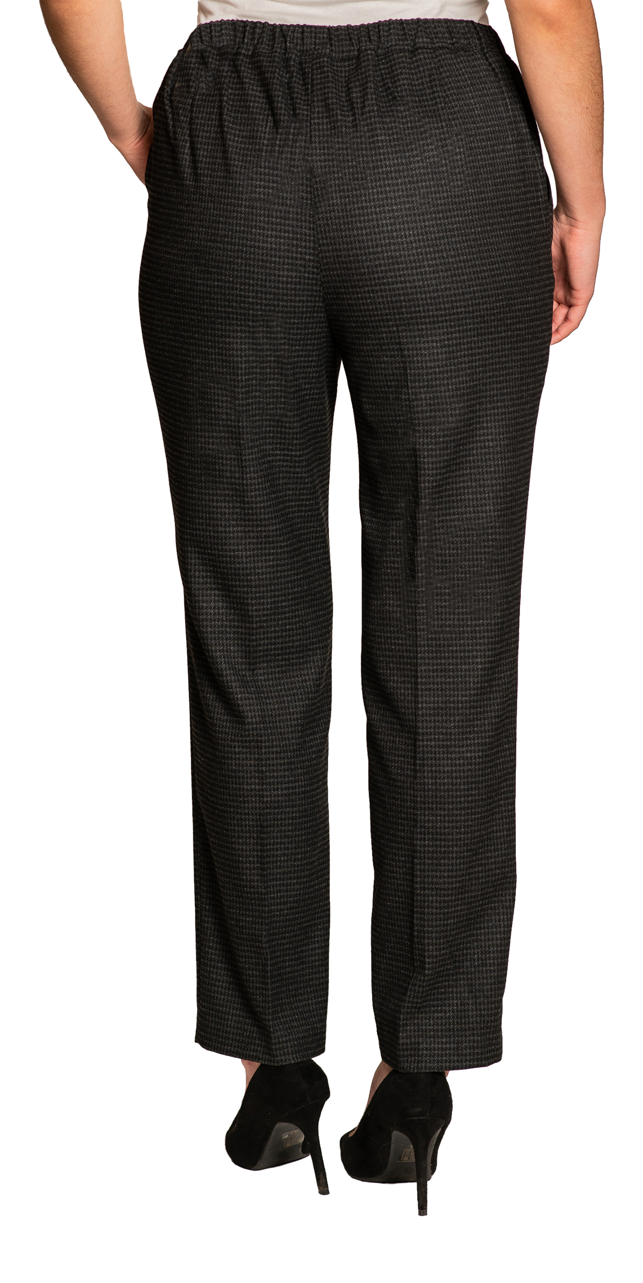Spodnie MARION w kolorze ciemnoszarym w pepitkę. Stylowe a zarazem wygodne spodnie z wysokim stanem. Elegancki wygląd i dobre dopasowanie gwarantują wysoki komfort użytkowania.