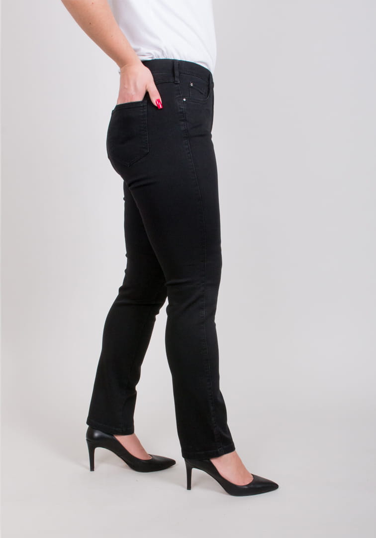 Spodnie MONI w kolorze czarnym. Modne spodnie, elastyczny materiał i wygodny krój zapewniają niebywały komfort noszenia i swobodę ruchu. Trwałość kolorów tkaniny gwarantuje długą żywotność i elegancki wygląd.