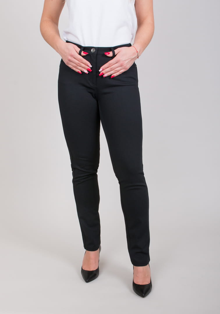 Spodnie MONI w kolorze czarnym. Klasyczne spodnie o wygodnym kroju, wykonane z ciepłego a zarazem oddychającego materiału. Doskonałe dopasowanie oraz wysoka jakość wykonania zapewniają komfort i swobodę ruchu.