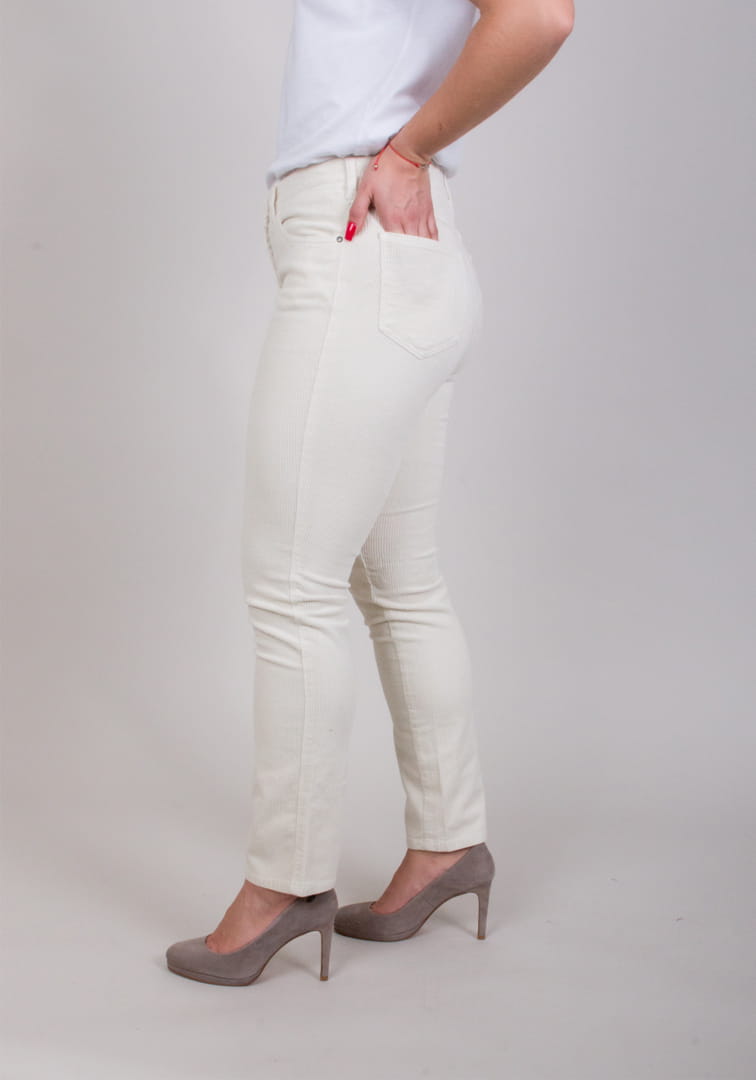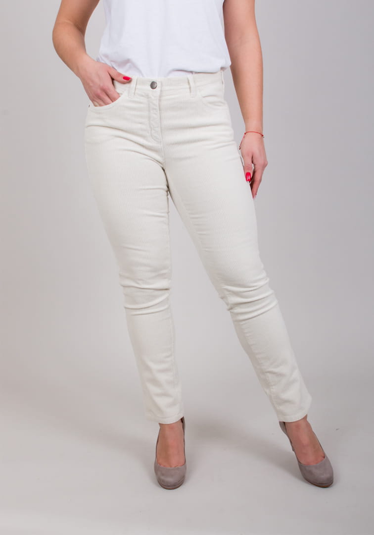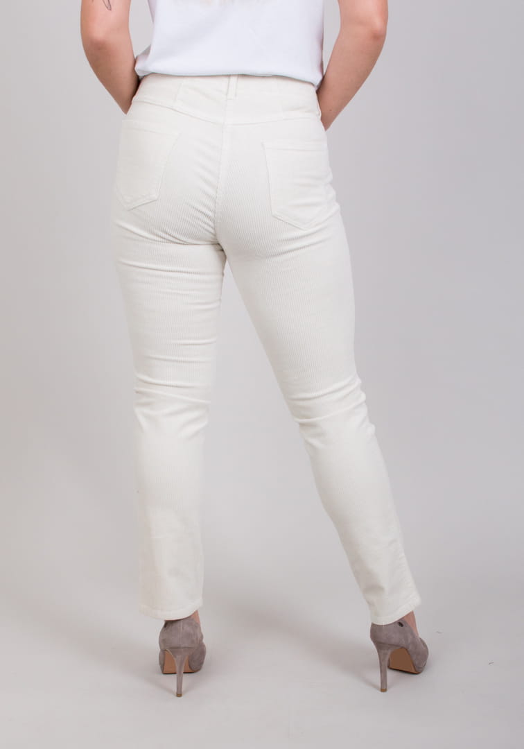 Spodnie MONI w kolorze białym. Klasyczne spodnie o wygodnym kroju, wykonane z ciepłego a zarazem oddychającego sztruksu. Doskonałe dopasowanie oraz wysoka jakość wykonania zapewniają komfort i swobodę ruchu.