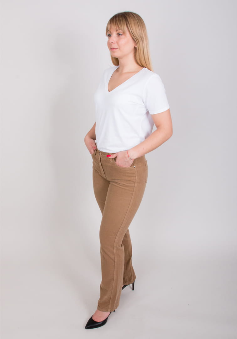 Spodnie MONI 42 w kolorze brązowym. Klasyczne spodnie o wygodnym kroju, wykonane z ciepłego a zarazem oddychającego sztruksu. Doskonałe dopasowanie oraz wysoka jakość wykonania zapewniają komfort i swobodę ruchu.