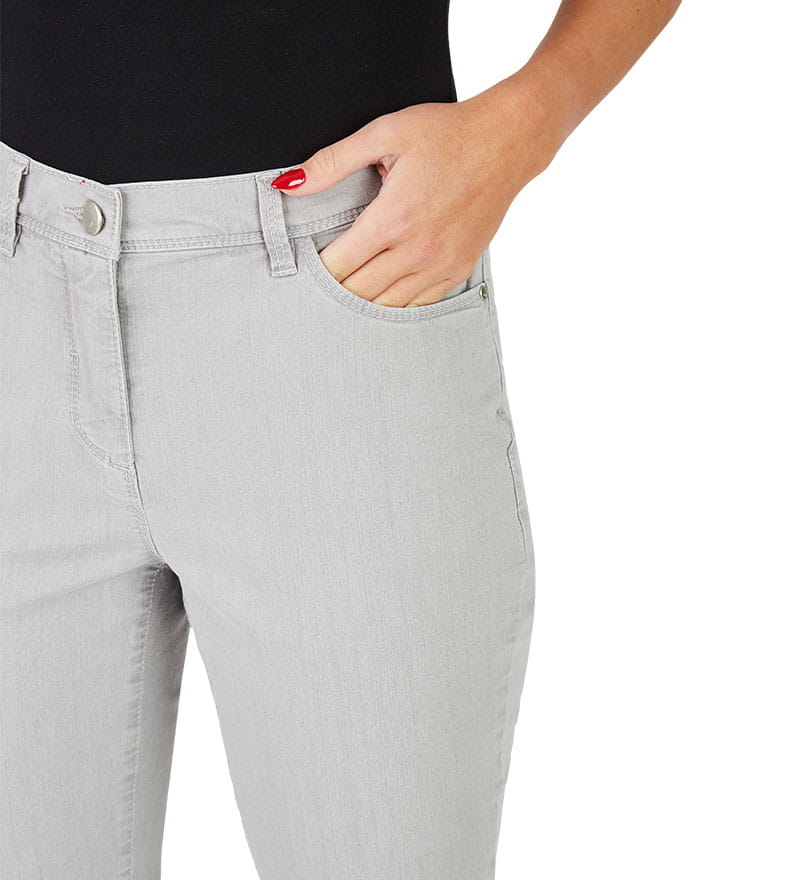 Spodnie LORA 36 w kolorze szaro-srebrnym. Modne spodnie, elastyczny materiał i wygodny krój zapewniają niebywały komfort noszenia i swobodę ruchu. Trwałość kolorów tkaniny gwarantuje długą żywotność i elegancki wygląd.