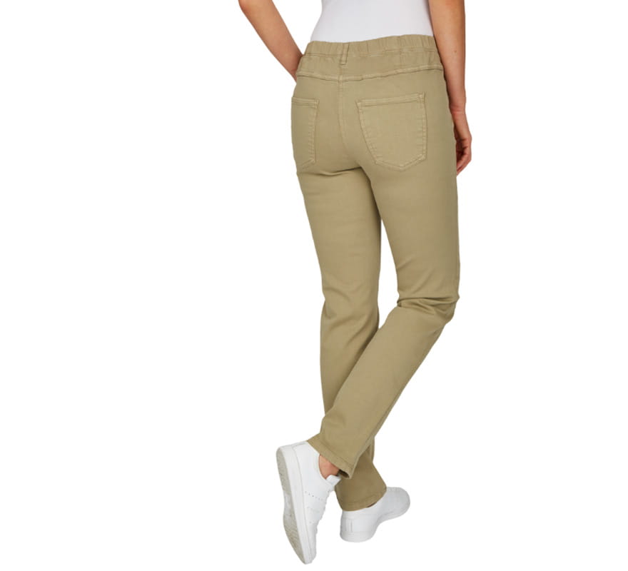 Spodnie MONI 7 w kolorze piaskowym. Modne spodnie, elastyczny materiał i wygodny krój zapewniają niebywały komfort noszenia i swobodę ruchu. Spodnie idealnie się dopasowują poprzez bardzo elastyczną tylną część spodni, którą zapewnia ściągacz w tylnej części paska. Trwałość kolorów tkaniny gwarantuje długą żywotność i elegancki wygląd.