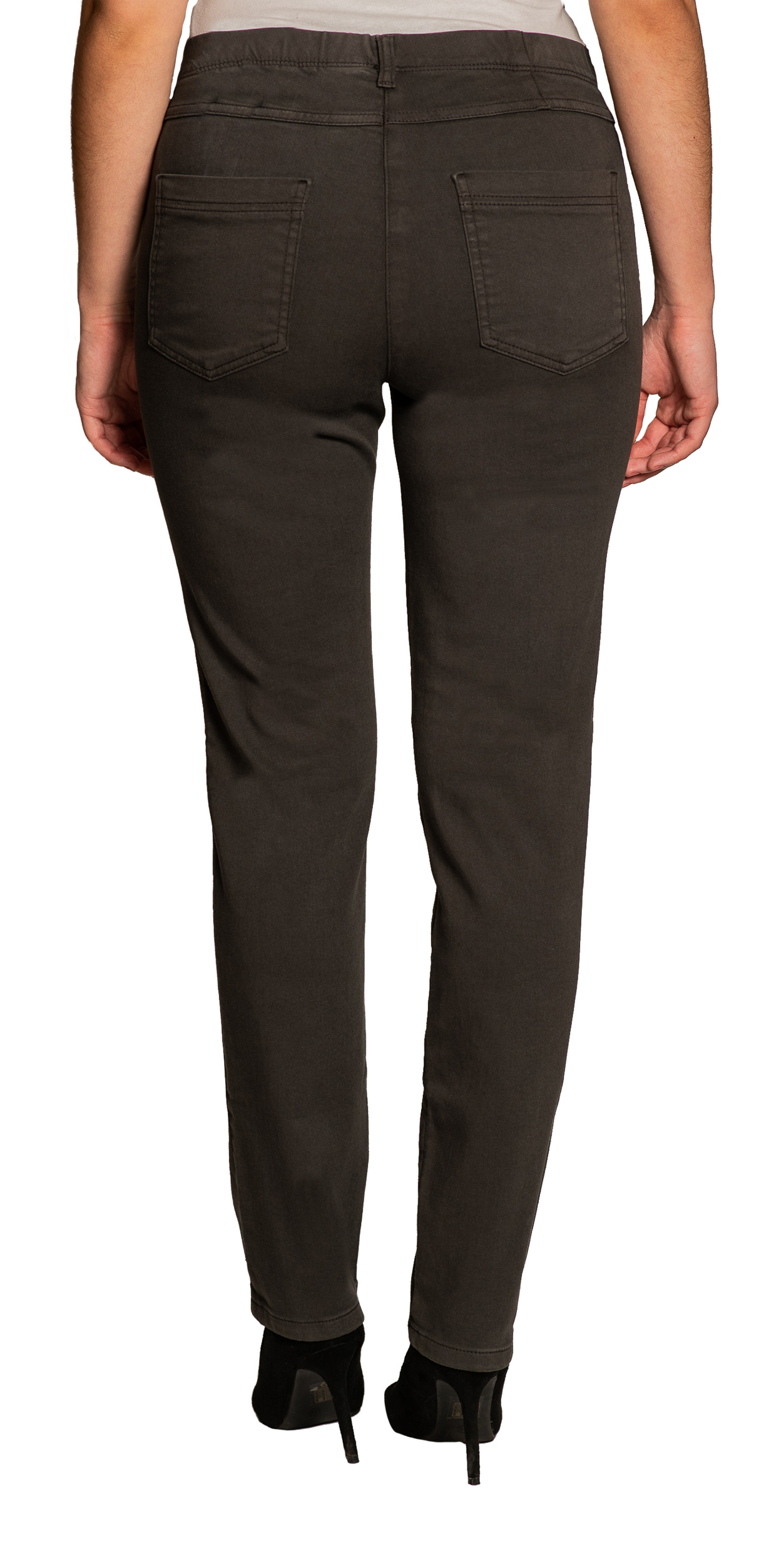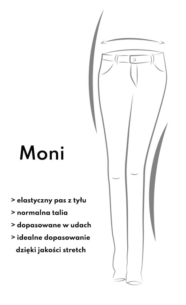 Spodnie MONI w kolorze ciemnej zieleni wojskowej. Modne spodnie, elastyczny materiał i wygodny krój zapewniają niebywały komfort noszenia i swobodę ruchu. Spodnie idealnie się dopasowują poprzez bardzo elastyczną tylną część spodni, którą zapewnia ściągacz w tylnej części paska. Trwałość kolorów tkaniny gwarantuje długą żywotność i elegancki wygląd.