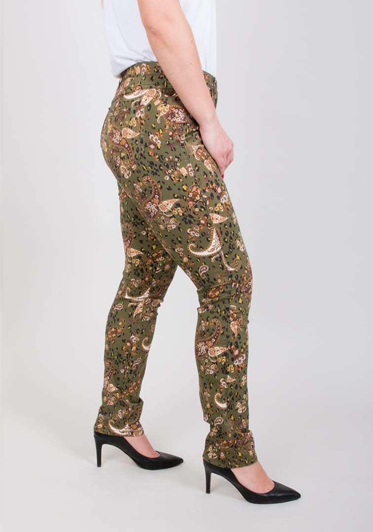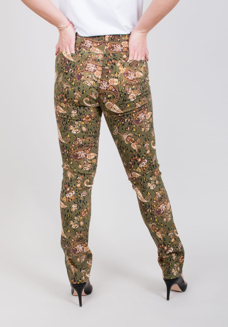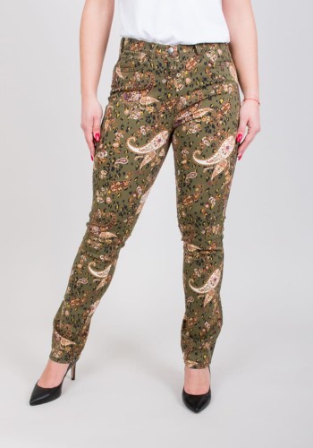 Spodnie MONI w kolorze zielonym i we wzory. Modne spodnie, elastyczny materiał i wygodny krój zapewniają niebywały komfort noszenia i swobodę ruchu. Trwałość kolorów tkaniny gwarantuje długą żywotność i elegancki wygląd.