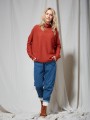 Sweter z golfem wykonany z miękkiej wełny merynosów łączy komfort z modnym stylem retro. Obszerny krój z nietoperzowymi rękawami zapewnia pełną swobodę ruchów, a delikatna, ciepła wełna gwarantuje przyjemne noszenie. Doskonale sprawdza się zarówno w zestawieniach ze spódnicą, jak i ze spodniami, stając się uniwersalnym i stylowym elementem każdej garderoby.