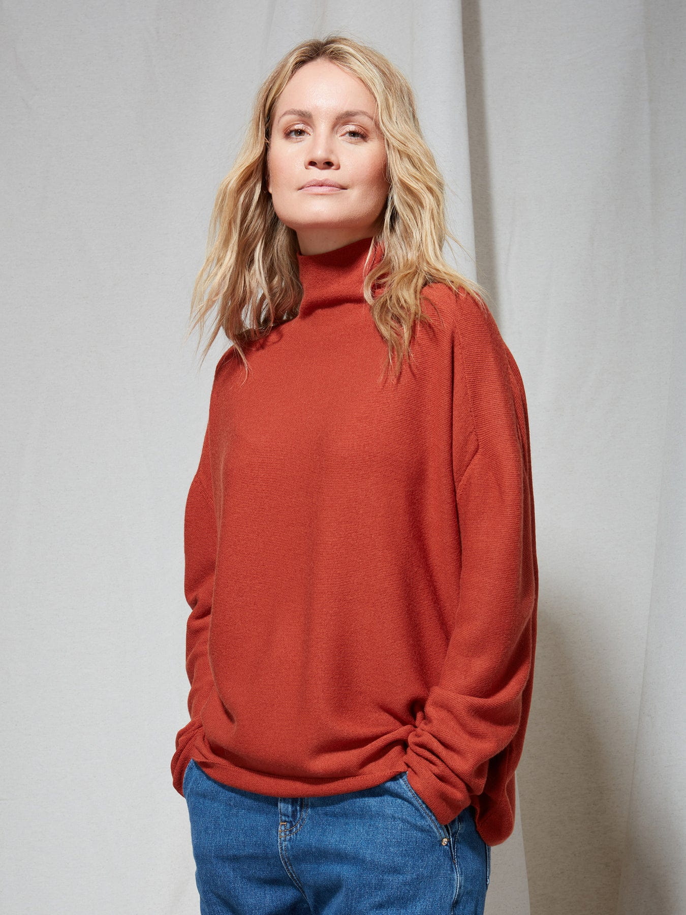 Golf damski PURE MERINO w kolorze ceglastym firmy FYNCH-HATTON.