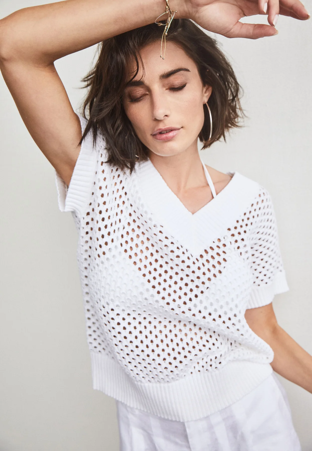 Letni sweter damski HOLE COTTON w kolorze białym firmy FYNCH-HATTON.