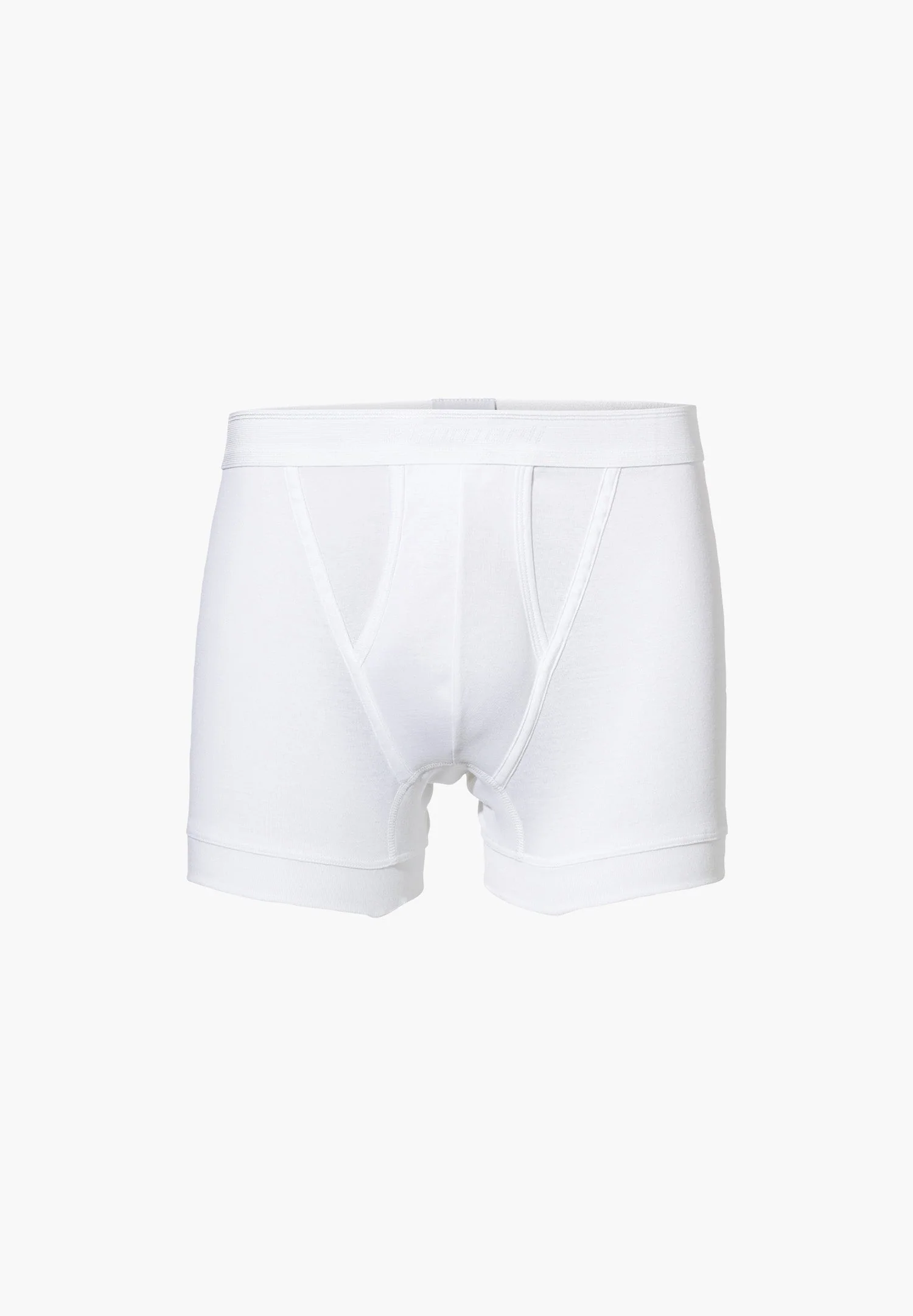 Klasyczne bokserki wykonane z czystej, wysokogatunkowej bawełny, charakteryzującej się długimi włóknami. Przed jej przetworzeniem na nieprzezroczystą, prążkowaną tkaninę usuwa się z niej wszelkie zanieczyszczenia, frędzle i zbyt krótkie włókna, a w rezultacie otrzymuje się wysokiej jakości tkaninę o miękkiej i gładkiej powierzchni. Jej kolejne zalety to wysoka chłonność i niski potencjał alergizujący. Bokserki dzięki temu są niezwykle komfortowe w noszeniu i ściśle przylegają do ciała. Wyróznia je szeroki, miękki ściągacz w pasie z logo Zimmerli. Miękka bawełniana tkanina frotte po wewnętrznej stronie ściągacza zapewnia dodatkowy komfort. Dopasowane mankiety nogawek są płaskie i wygodne. Nie uciskają i nie zsuwają się. Bokserki mają rozporek i płaskie szwy. Te klasyczne bokserki idealnie podkreślają męski, purystyczny styl.