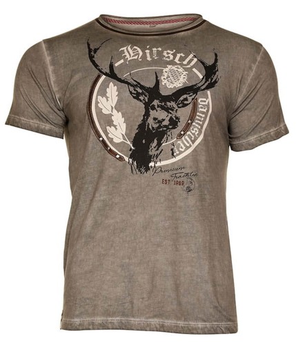 - Z przodu nadruk z motywem głowy jelenia,liści dębu i herbu Bawarii