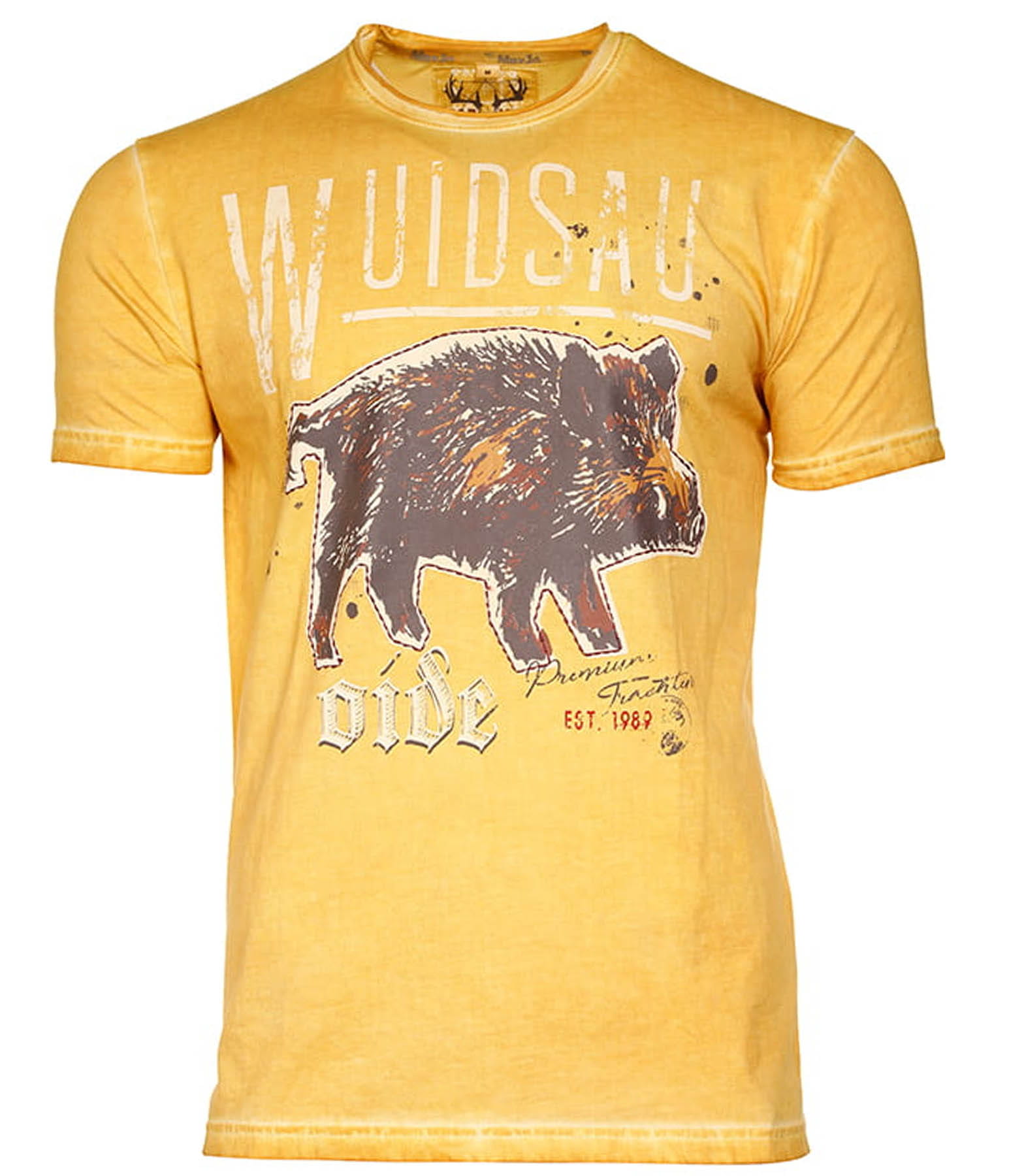 - Z przodu wizerunek dzika z kontrastowym szwem