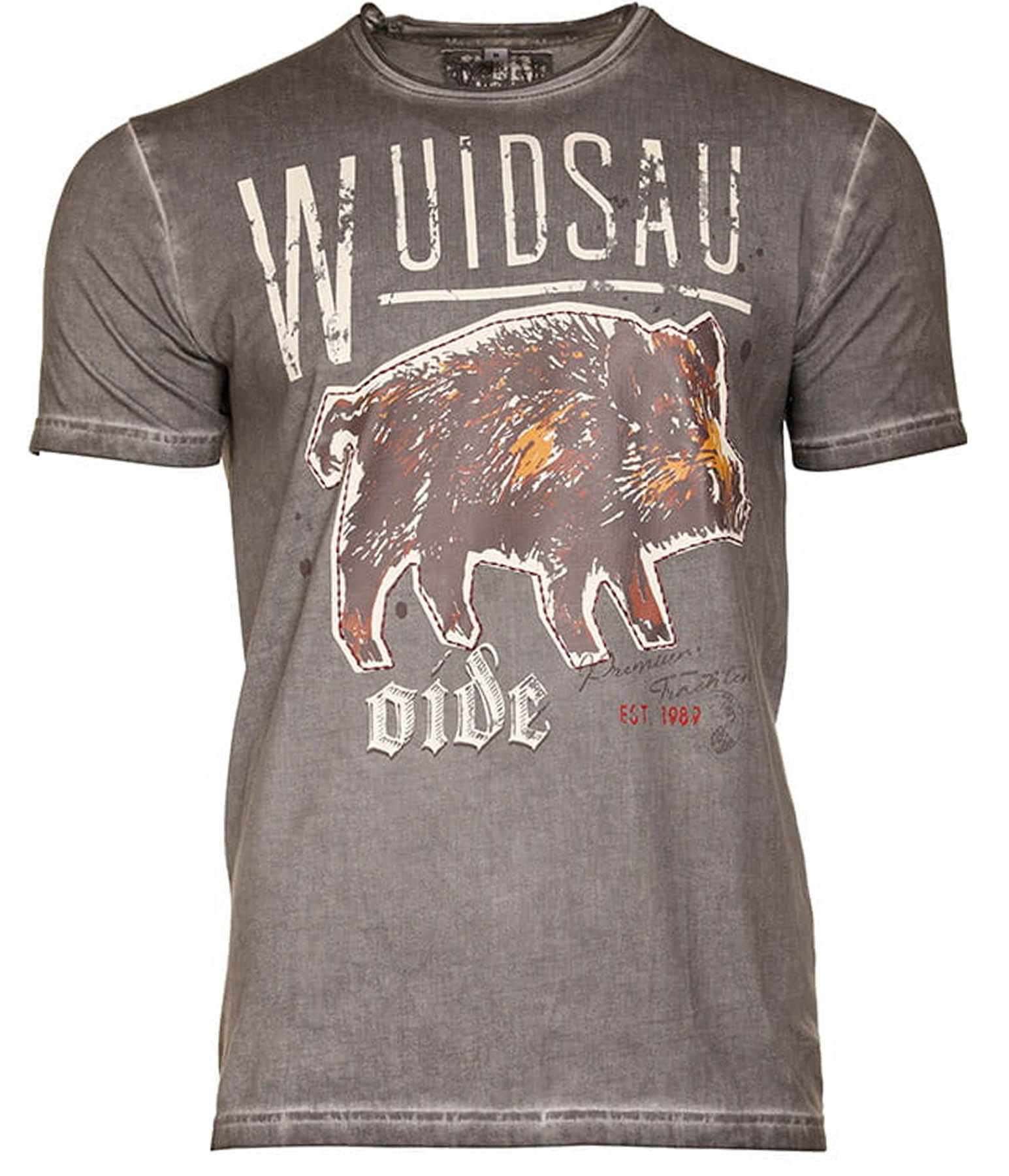 - Z przodu wizerunek dzika z kontrastowym szwem