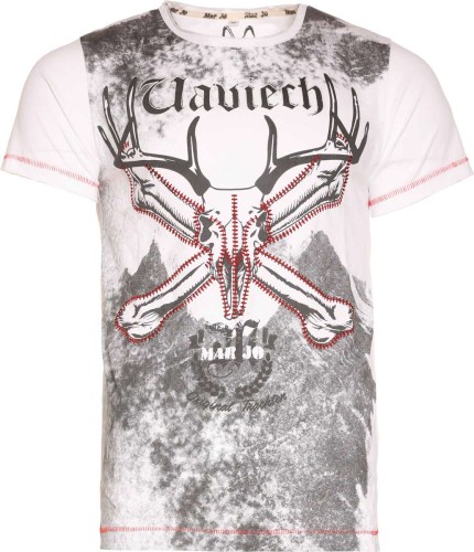 Bawełniany t-shirt męski w kolorze białym z nadrukiem czaszki jelenia. Wykonany z najwyższej jakości czystej bawełny z okrągłym dekoltem.