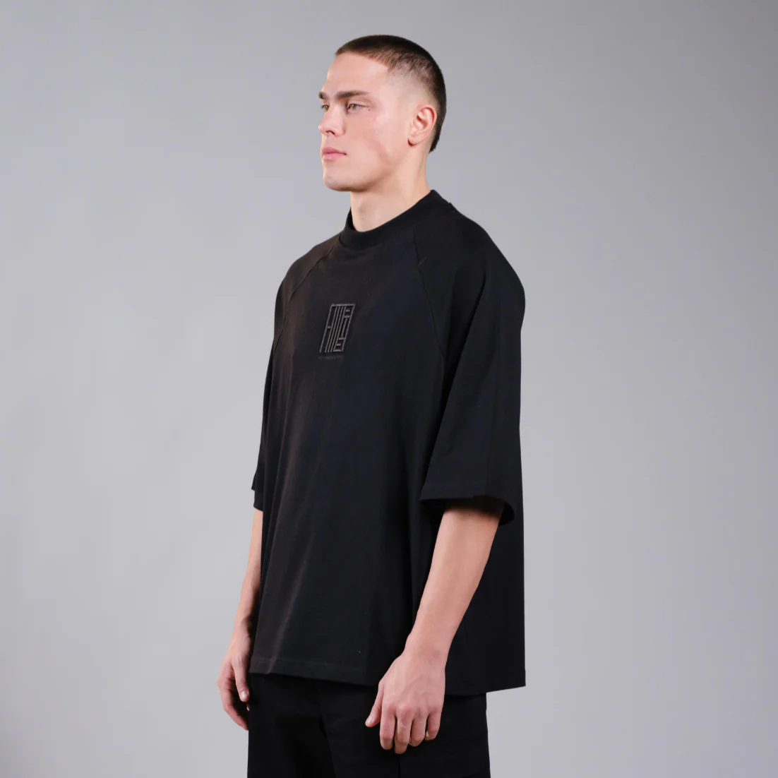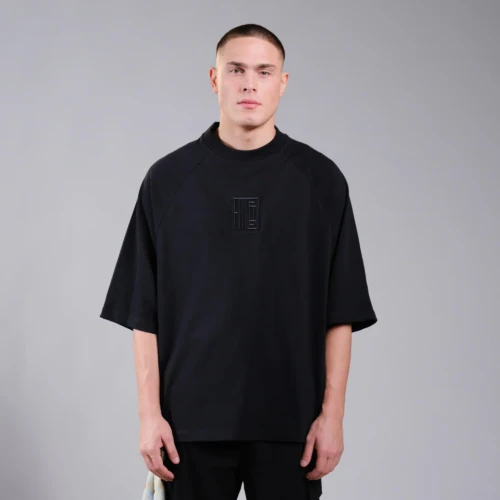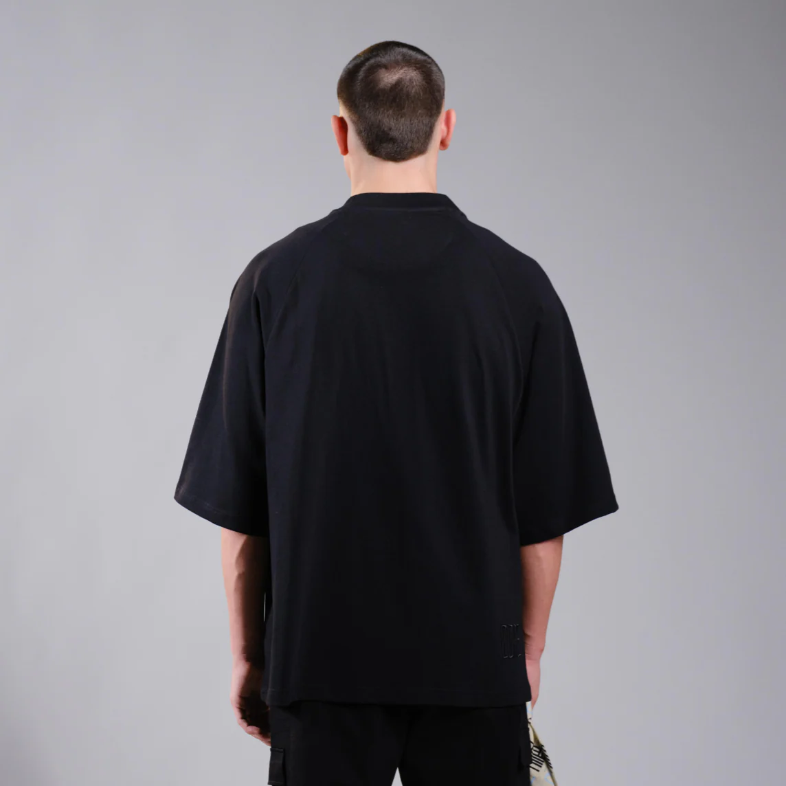 Czarna koszulka oversizowa, na środku posiada logo firmy ALESSANDRO MAGNO.