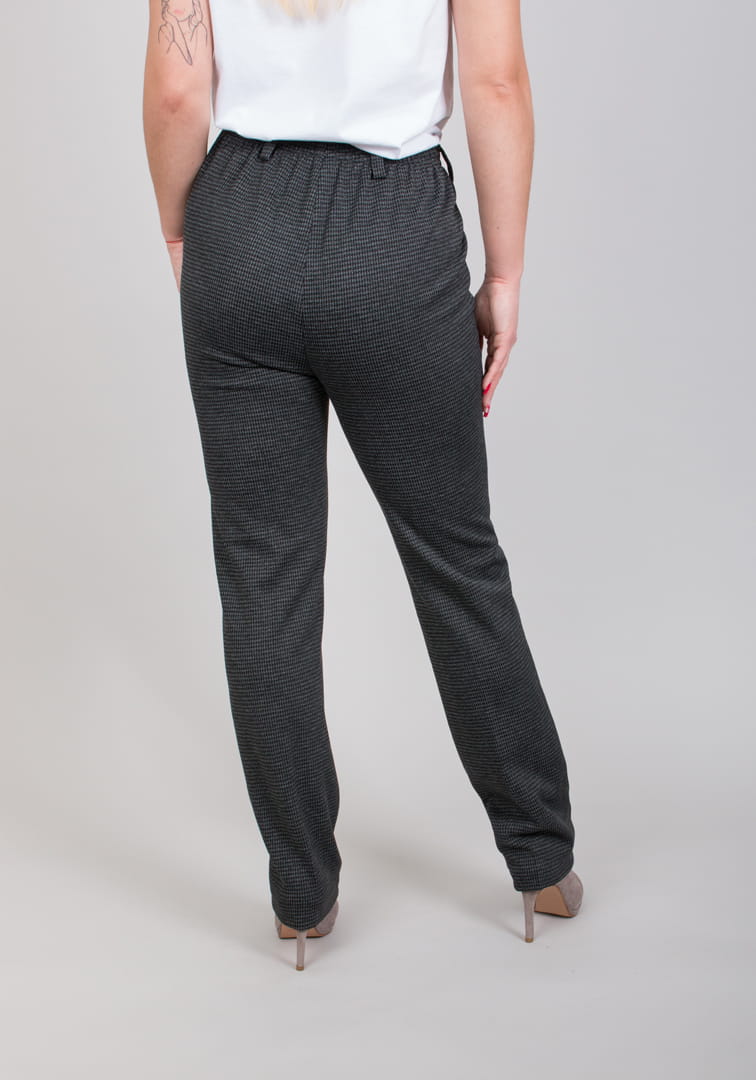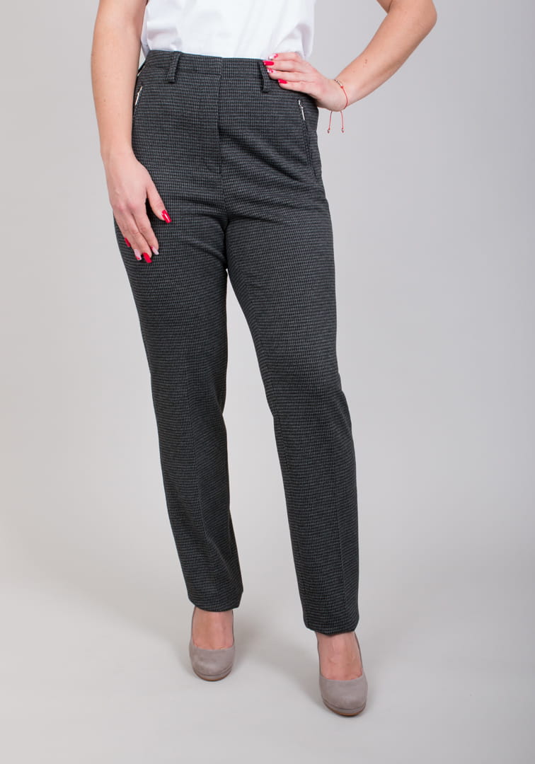 Spodnie ESTER w kolorze szarym. Klasyczne spodnie o wygodnym kroju,wykonane z ciepłego a zarazem oddychającego materiału. Doskonałe dopasowanie oraz wysoka jakość wykonania zapewniają komfort i swobodę ruchu.